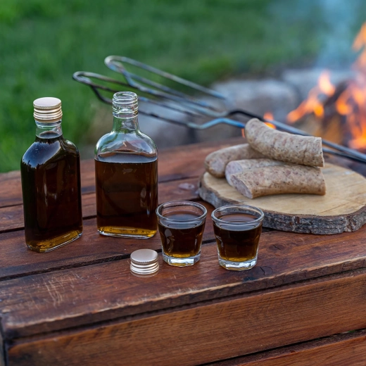 Construcția transparentă permite să verifici ușor cantitatea și culoarea băuturii – ideală pentru spirtoase, siropuri sau elixire de casă.