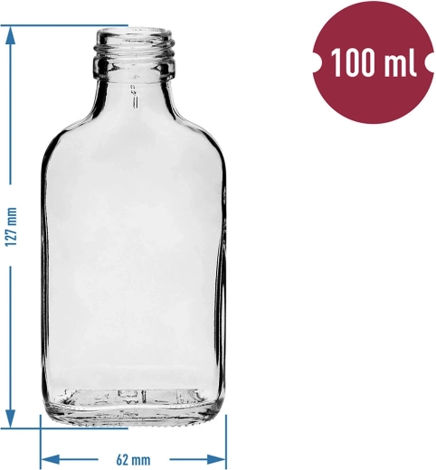 Această sticlă din sticlă, cu forma tradițională de ploscă, îmbină practicitatea cu stilul. Sticla transparentă și rezistentă permite controlul conținutului și arată elegant la servire. Datorită dimensiunilor compacte o poți pune ușor în buzunar, borsetă sau geantă de mână.