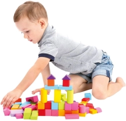 În găletușă găsiți 100 de cuburi colorate de diferite forme, care vor ține copiii ocupați ore întregi. Capacul găletușei funcționează ca o jucărie de inserare, ajutând copilul să recunoască diferite forme și să îmbunătățească motricitatea fină.