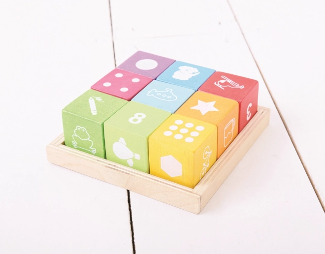 - Ambalaj practic: 9 cuburi + tavă din lemn pentru depozitare ordonată.