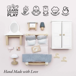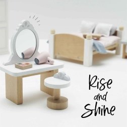 Le Toy Van aduce un set pentru dormitor care aduce eleganță și confort în fiecare căsuță de păpuși. Lumea jucăușă și visătoare a fanteziei copilăriei devine realitate cu acest set.