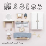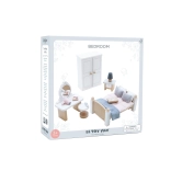 Setul pentru dormitor este proiectat în stil clasic cu tonuri neutre plăcute, care completează armonios orice căsuță de păpuși.