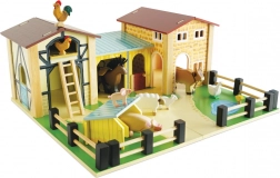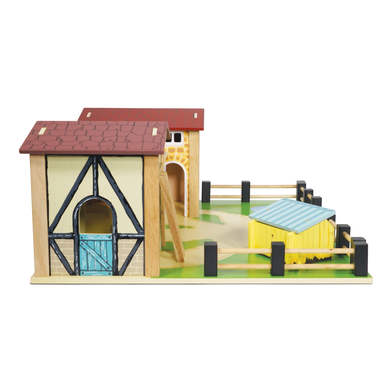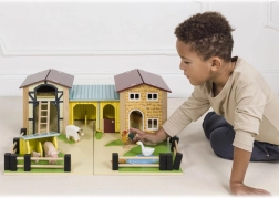 Descoperă farmecul vieții la țară cu ferma din lemn LE TOY VAN – un set clasic de joacă pentru micii iubitori de animale. Include un hambar, grajd, sală de muls, depozit de fân și coteț pentru porci, pe un podium ilustrat cu gard detașabil. Fabricată din lemn sustenabil, vopsită cu vopsele netoxice și concepută pentru a stimula jocul imaginativ și a dezvolta abilitățile cognitive.