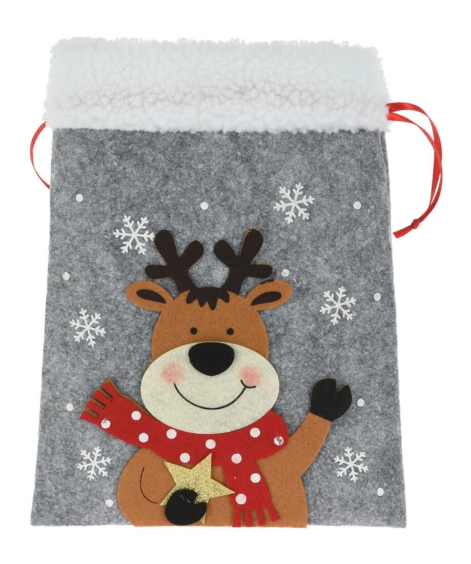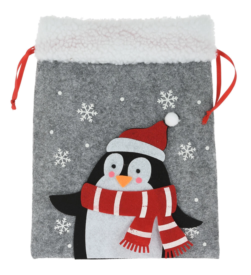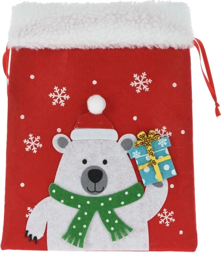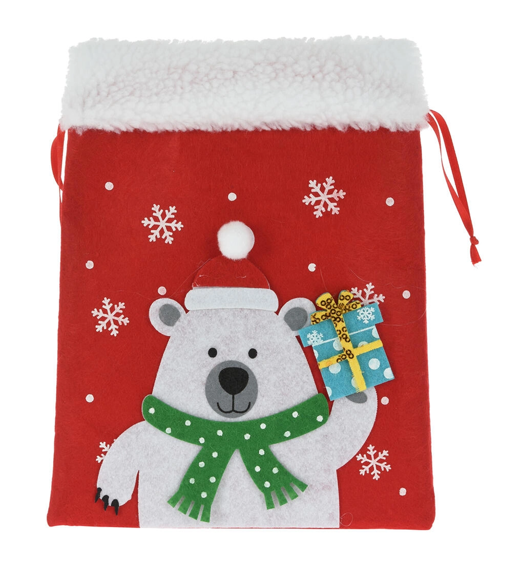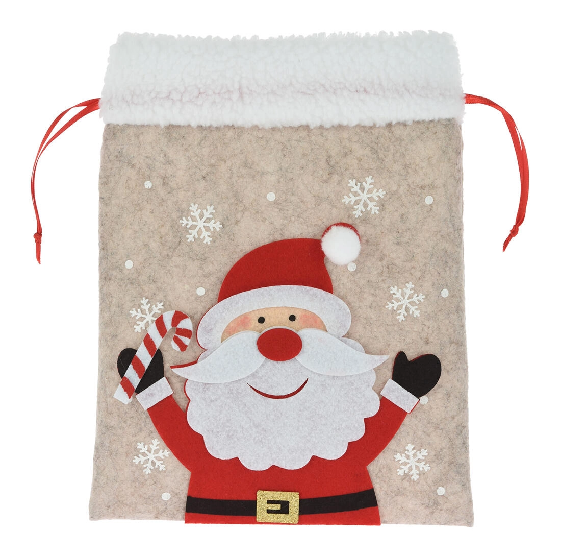 Aduceți bucurie dăruirii cu un săculeț de Crăciun elegant din fetru. Materialul moale, cu puf fin, oferă o senzație caldă și decorativă, iar aplicațiile de sărbătoare (MOȘ NICOLAE, ren, urs polar etc.) îi vor încânta pe copii și adulți deopotrivă. Săculețul are strângere practică pe laterale, astfel încât se umple ușor și rămâne sigur închis.