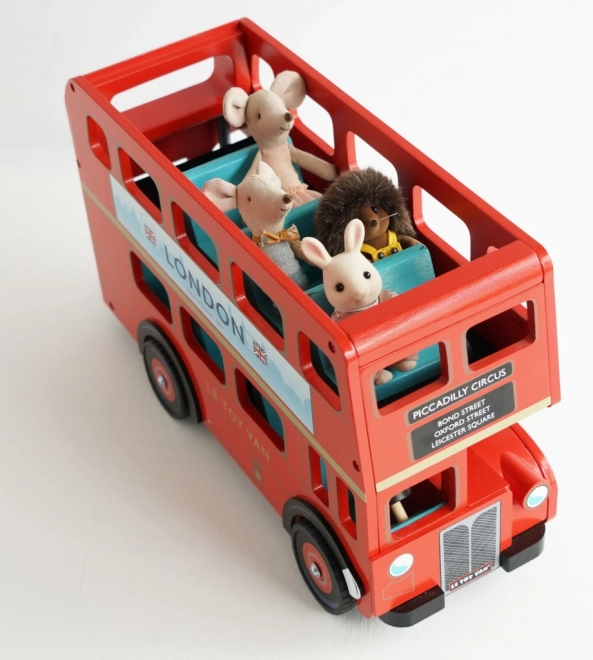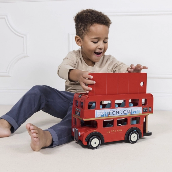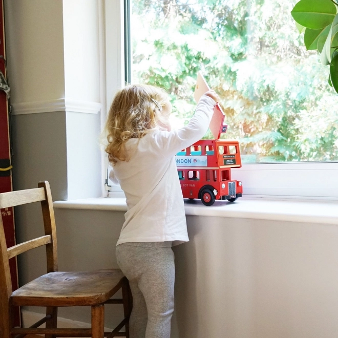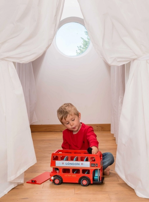 Descoperiți frumusețile Londrei cu autobuzul etajat din lemn Le Toy Van. Această jucărie iconică, proiectată cu detalii precum semnalizare realistă și acoperiș detașabil, oferă o modalitate grozavă de a dezvolta imaginația și motricitatea fină a copiilor.