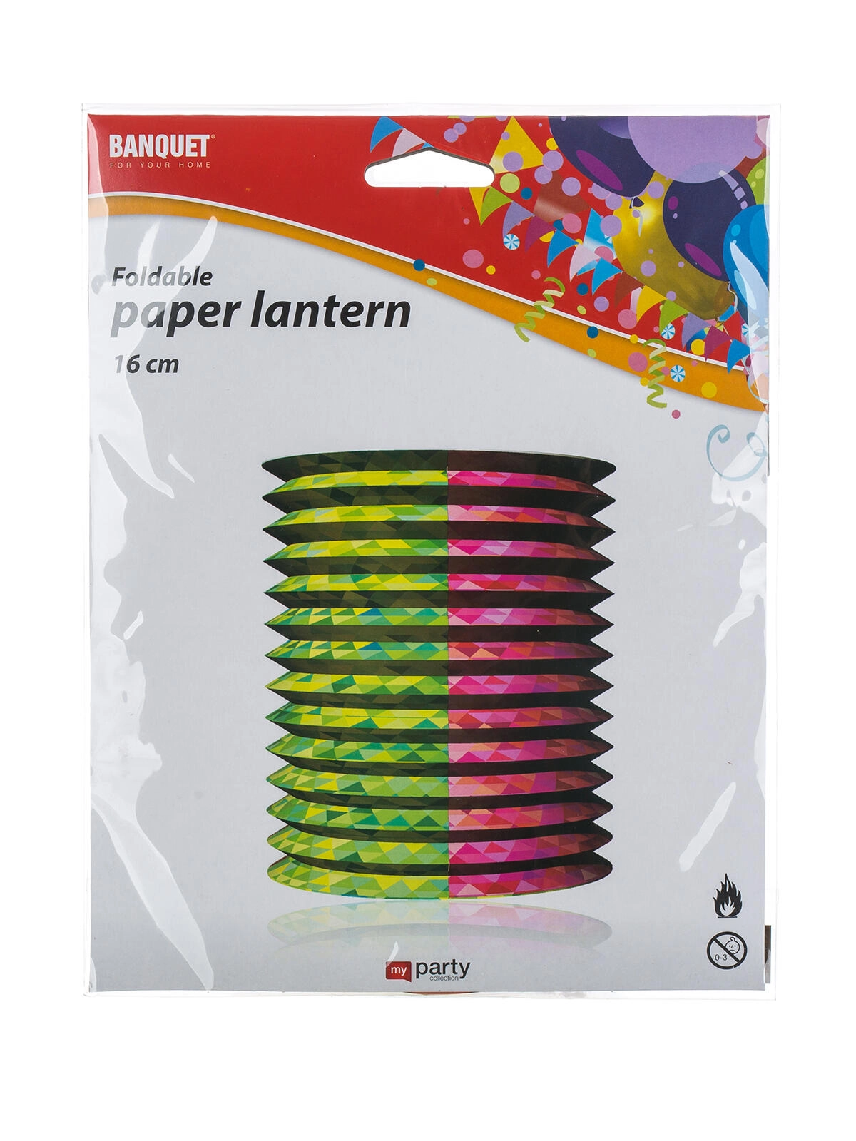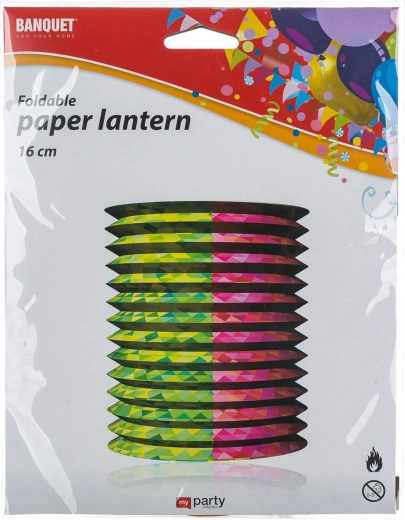Lampionul de hârtie stilat MY PARTY, cu diametrul de 16 cm, creează o atmosferă plăcută la orice petrecere sau întâlnire în grădină. Datorită manșetei metalice pentru fixarea lumânării, utilizarea este sigură și stabilă. Disponibil în mai multe decoruri, ușor de agățat și instalat rapid. Ideal pentru decorarea interiorului și a exteriorului.