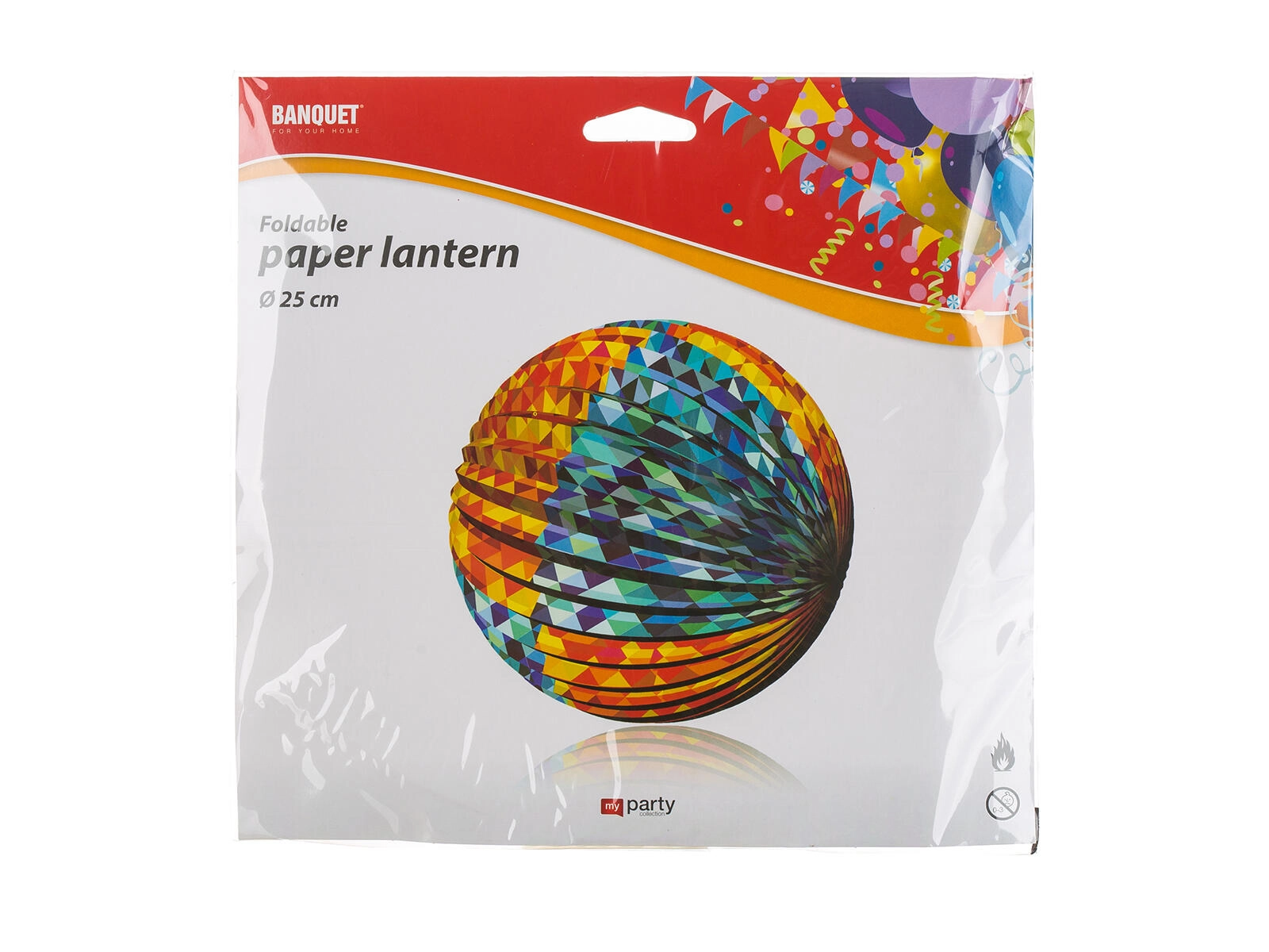 Lampionul din hârtie MY PARTY este alegerea ideală pentru aniversări, întâlniri în grădină și decoruri sezoniere. Datorită construcției pliabile, îl deschizi ușor într-o sferă 3D, iar după eveniment îl pliezi din nou pentru depozitare compactă. Culorile vii și modelul geometric atrag la prima vedere și oferă spațiului o energie proaspătă și jucăușă.