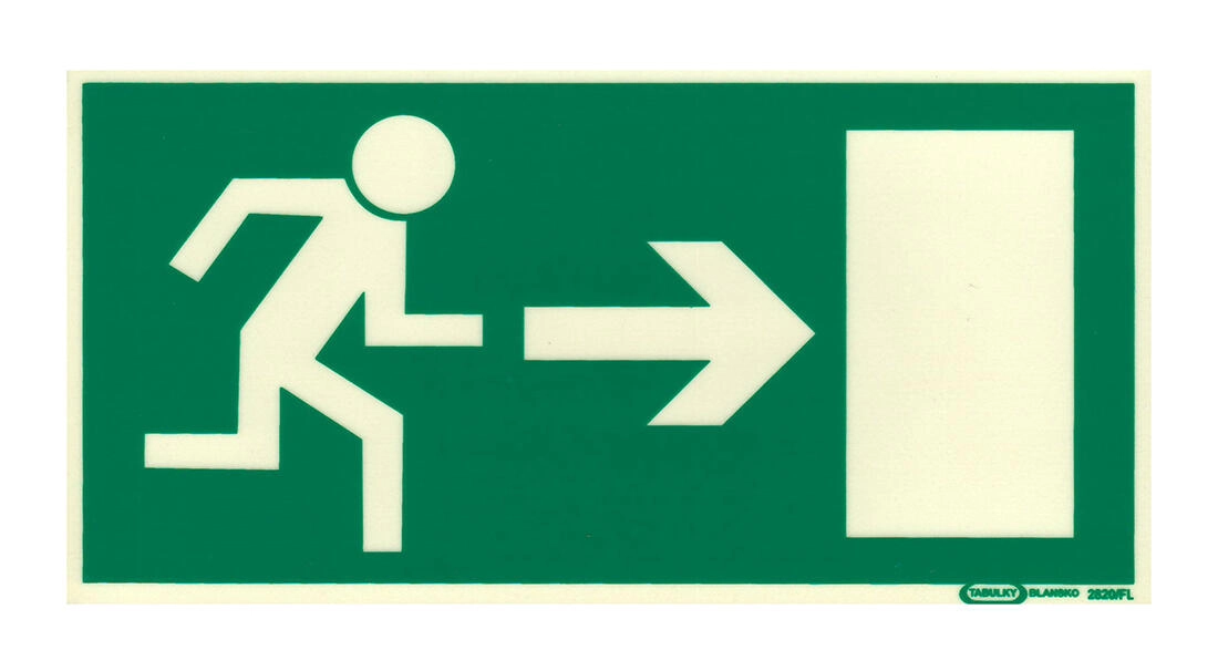 Tabelă de siguranță fotoluminescentă Ieşire de urgență la dreapta din plastic rezistent, în format 210 × 105 mm, asigură ghidarea clară și rapidă a persoanelor în caz de evacuare, chiar și în situația unui pana de curent. Datorită autoluminescenței, marcajul este bine vizibil în întuneric și contribuie la reducerea riscurilor la locul de muncă, în clădiri și spații publice.
