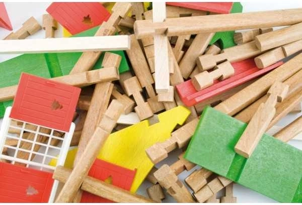 O construcție din lemn care îi familiarizează pe micii constructori cu viața la fermă și devine o podoabă a camerei copiilor. Construcțiile Jeujura au o tradiție îndelungată și fac parte dintre jucăriile clasice franceze. Oferă serii dedicate tematic chaleturilor, căsuțelor și fermelor, dar și Vestului Sălbatic și Evului Mediu. Pot fi combinate liber între ele, iar pentru multe dintre ele sunt disponibile accesorii, figurine și vehicule. Sunt fabricate în Franța, din lemn masiv de fag și pin de origine franceză. Piesele sunt tratate exclusiv cu vopsele și lacuri pe bază de apă. Fiecare set este ambalat într-o servietă practică din carton, tipărită cu cerneluri vegetale, iar în ambalaj este inclus un manual ușor de înțeles. Principalele caracteristici: 180 piese din lemn masiv și placă de bază, ambalaj practic, fabricat în Franța