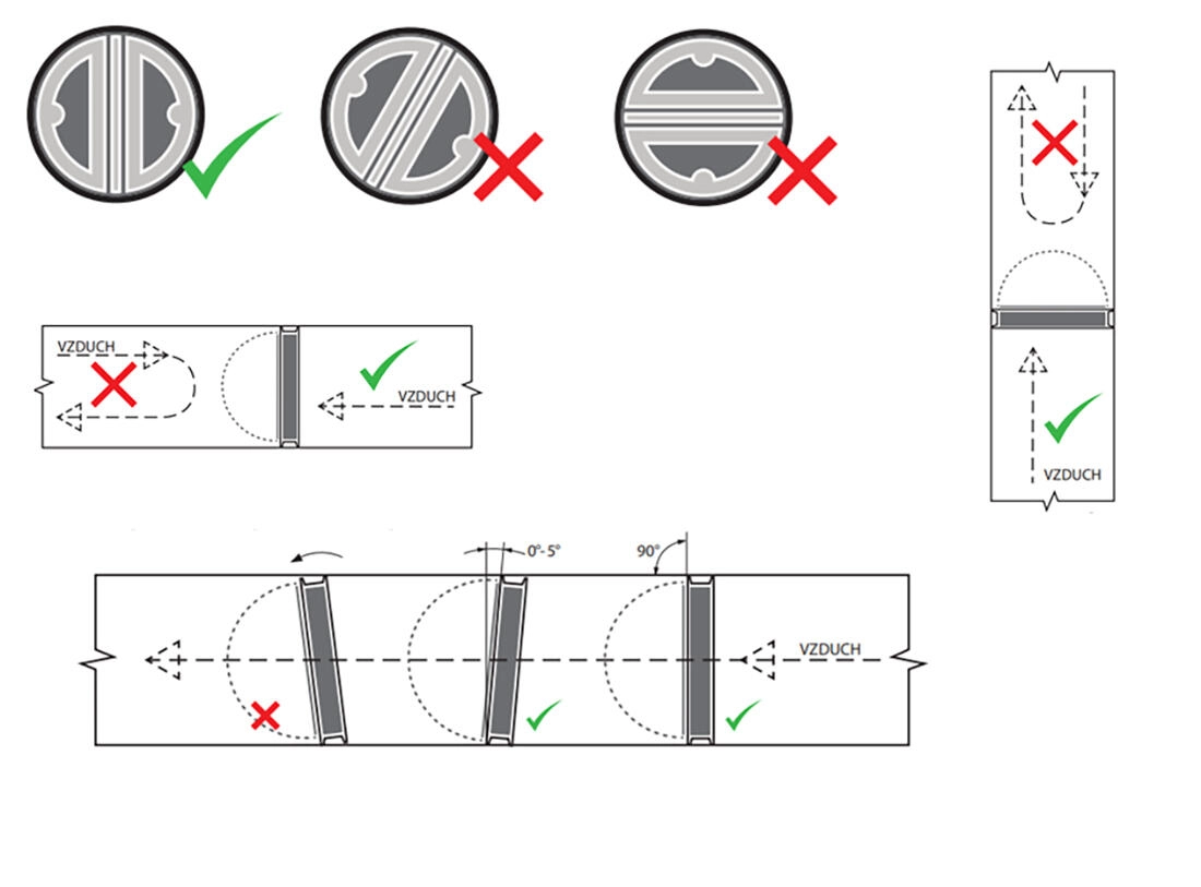Instalarea este rapidă și fără probleme – este suficient să introduceți clapeta în canalul rotund V104. Reprezintă soluția ideală pentru hote, băi și toalete, unde previne în mod fiabil revenirea mirosurilor și a aerului rece. Rezistă pe termen lung la temperaturi de până la 80 °C și pe termen scurt până la 85 °C.