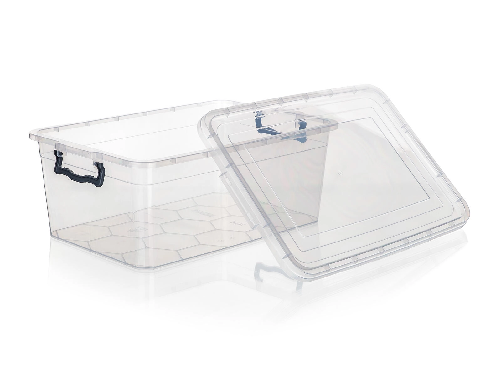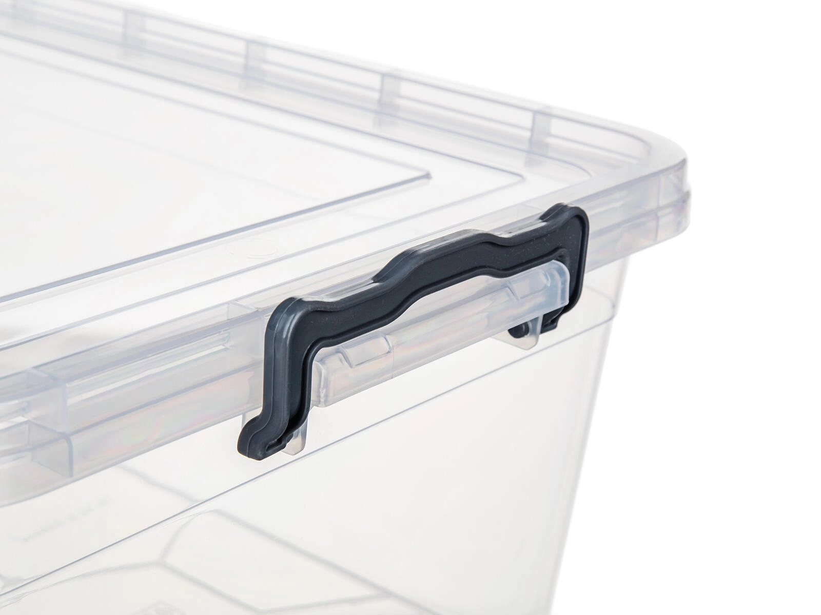 Cutia de depozitare Gema cu volum de 20 litri este o alegere ideală pentru casă, birou și atelier. Corpul transparent facilitează orientarea rapidă în obiectele depozitate, în timp ce capacul solid se închide cu ajutorul clemelor și protejează conținutul de praf și murdărie.