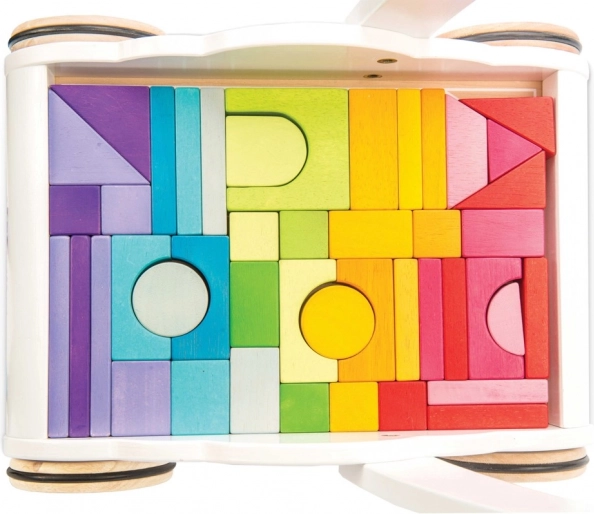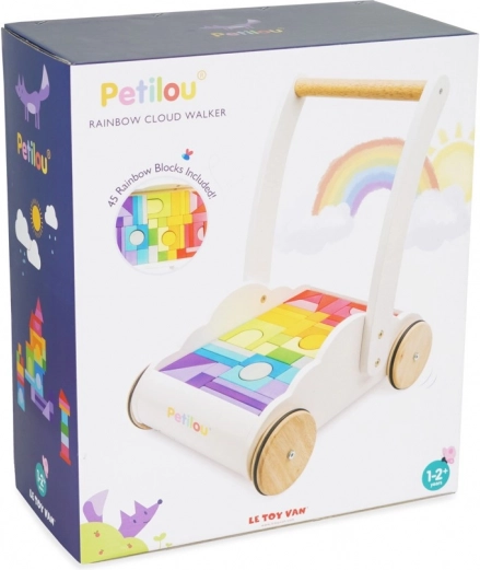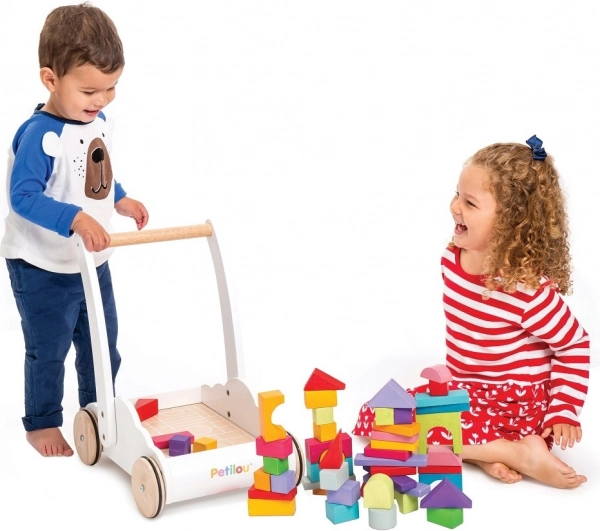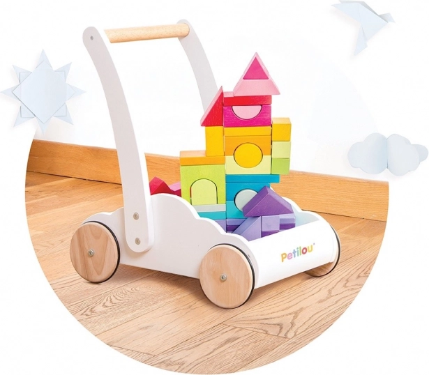 Căruciorul cu cuburi curcubeu Petilou este conceput pentru a le oferi copiilor încredere și stabilitate la primii pași. Este echipat cu 45 de cuburi în diverse nuanțe ale curcubeului, care sprijină dezvoltarea imaginației spațiale, îndemânării și motricității.