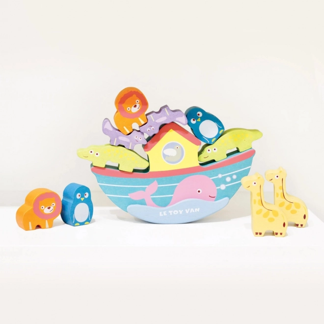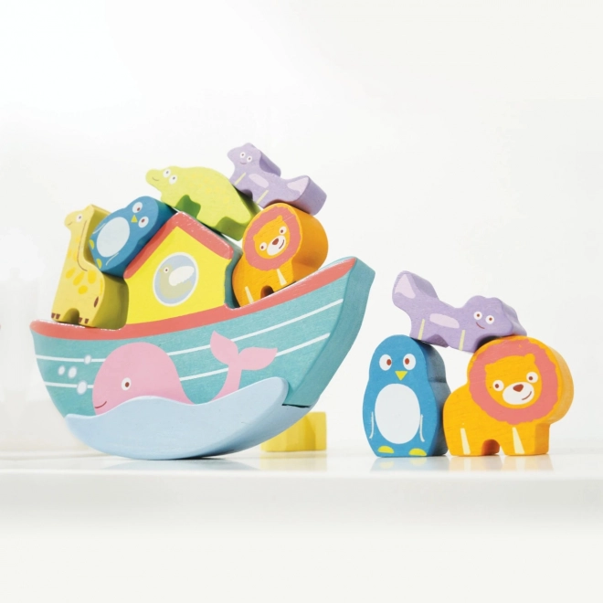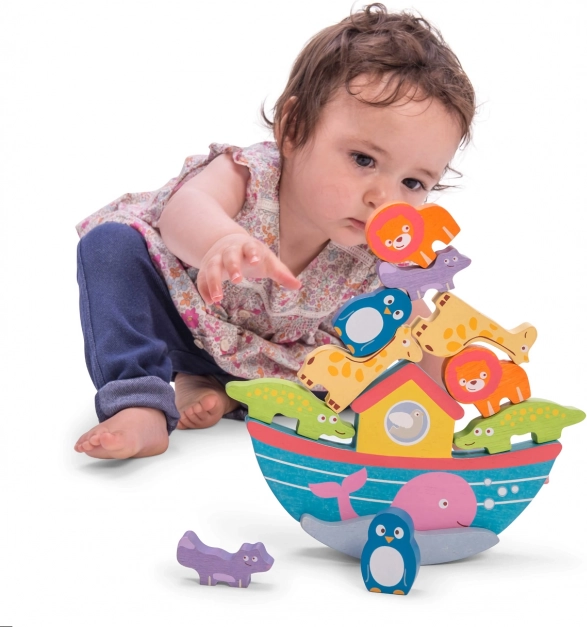 Această arca de echilibru frumos colorată include zece animale pictate manual pe care copiii le așează pe barcă, îmbunătățindu-și astfel coordonarea mână-ochi și îndemânarea. Setul de animale și barcă este realizat din lemn sustenabil certificat FSC și este pictat cu vopsele non-toxice pe bază de apă.