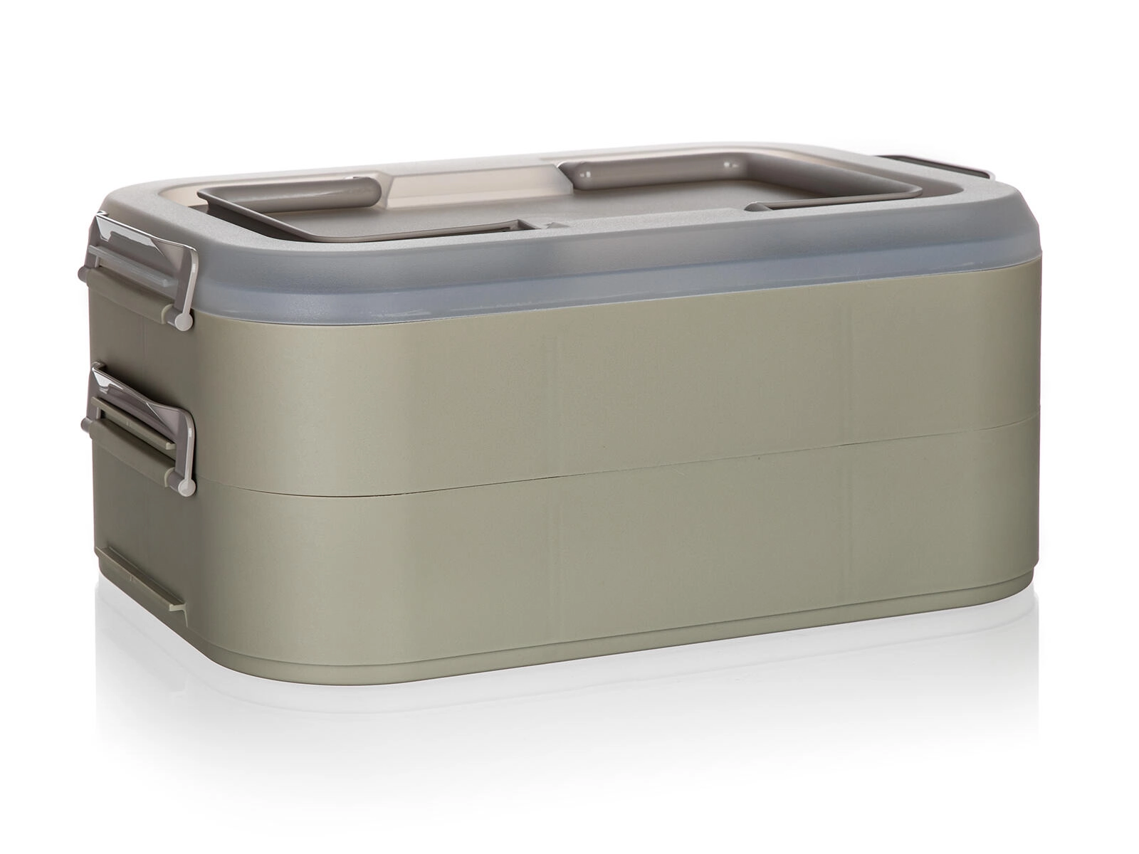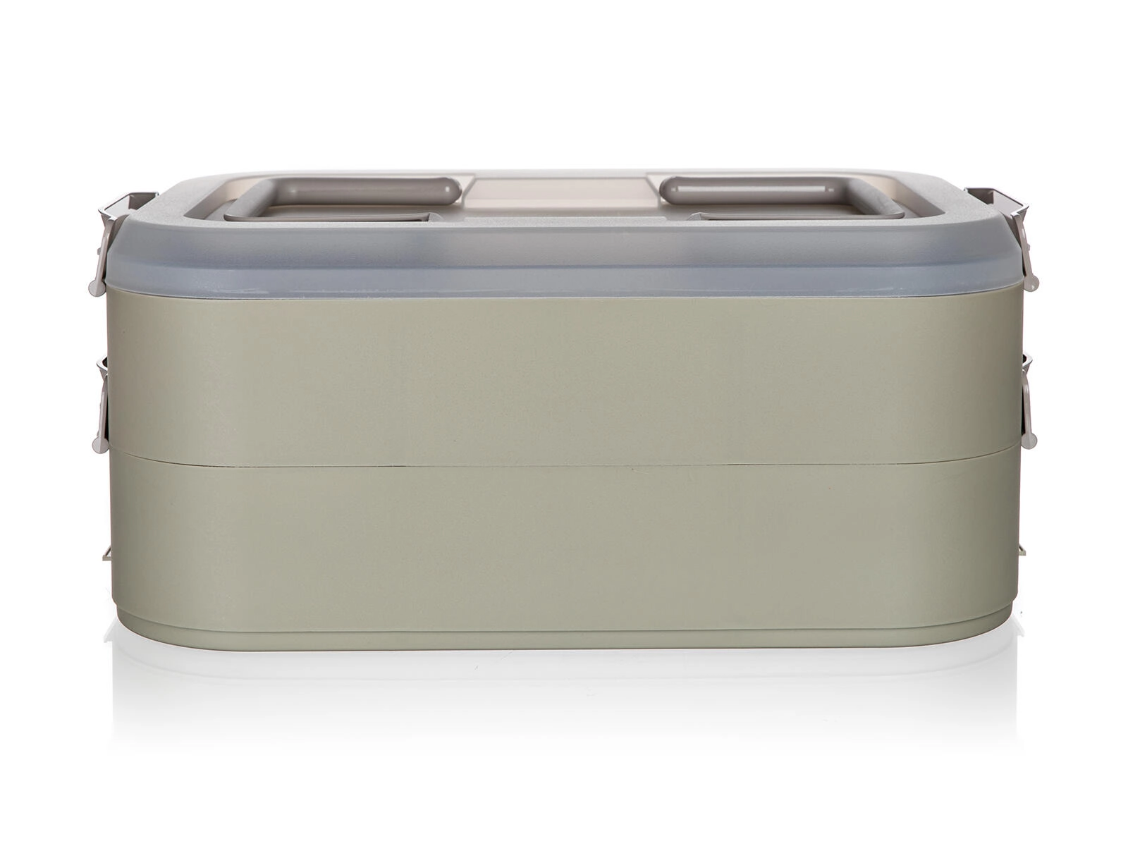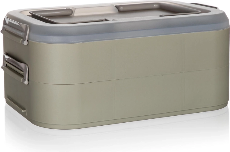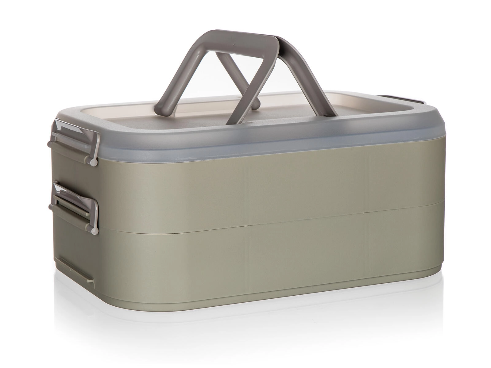 Bucurați-vă de o organizare comodă și de un transport facil al gustărilor cu cutia portabilă pe două niveluri, în nuanță elegantă latte și cu capac transparent. Construcția robustă cu cleme solide menține conținutul bine închis, iar mânerul practic facilitează transportul la picnic, petreceri sau la serviciu.