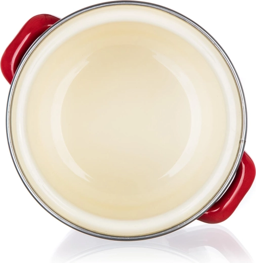 Suprafața roșie lucioasă cu interior crem este rezistentă la zgârieturi și ușor de curățat.