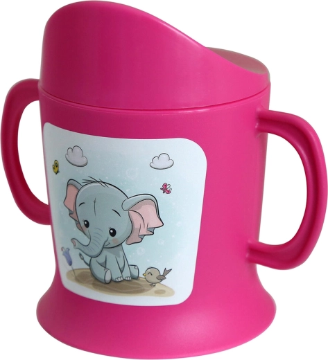 Cănuța ușoară pentru bebeluși cu guriță, cu un volum de 150 ml, este ideală pentru primii pași către băutul independent. Datorită celor două mânere, copiii o pot ține ușor, execuția din plastic este ușoară și rezistentă, iar motivul SOARE îi va atrage pe micii exploratori. Disponibilă într-un mix de culori (roz, albastru).