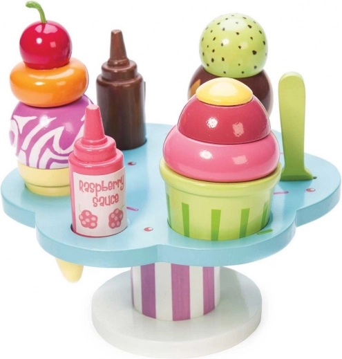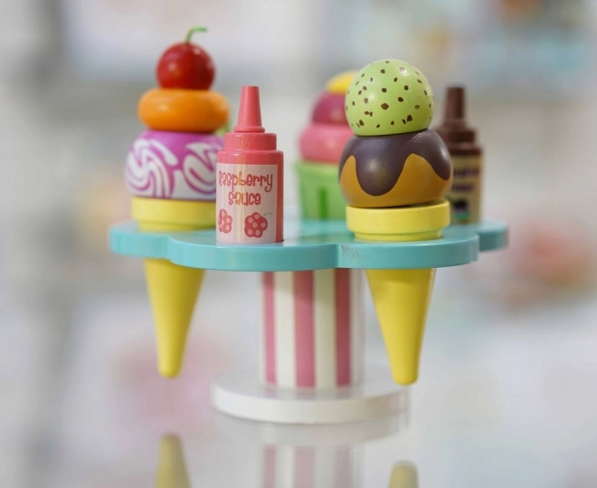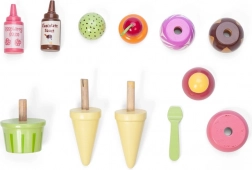 Setul de joacă Le Toy Van Carlo’s Gelato le oferă copiilor porții nesfârșite de distracție și imaginație. Conține cornete și un pahar, cupe detașabile, două sosuri și toppinguri, plus o linguriță. Este realizat din lemn sustenabil certificat FSC, pictat manual cu vopsele netoxice pe bază de apă și susține motricitatea fină, abilitățile cognitive și jocul de rol.