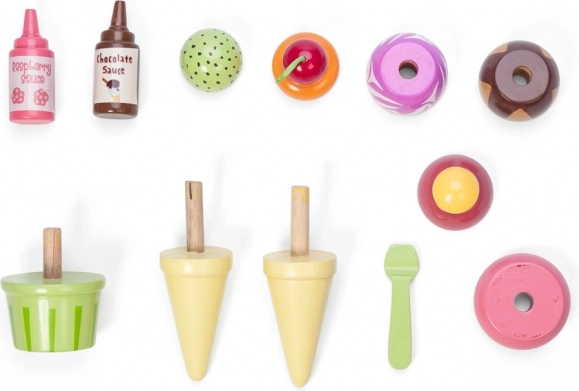 Cupele detașabile, cornetele și paharul invită la „amestecarea aromelor” și decorarea cu sos de zmeură sau ciocolată. Perfect pentru jocul de-a gelateria.