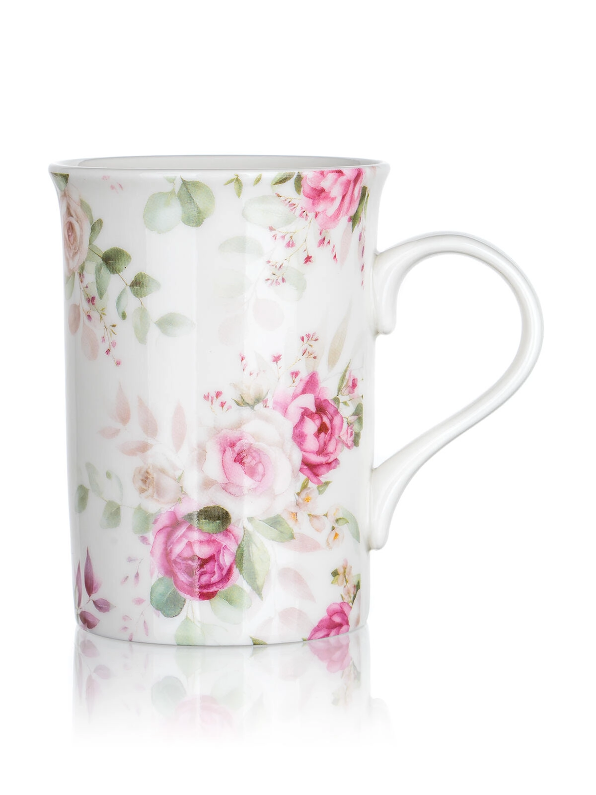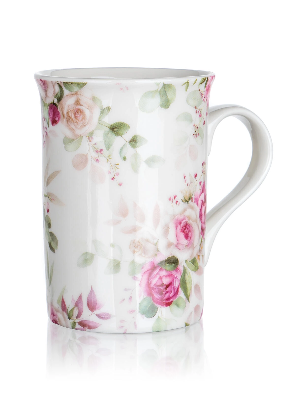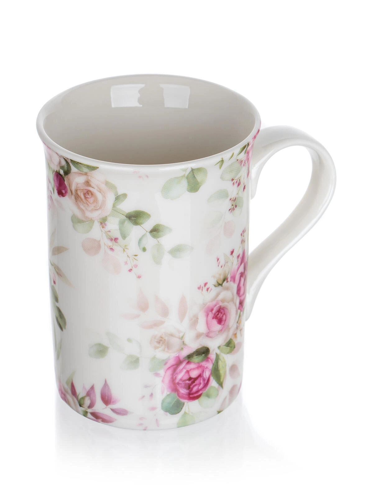 Cană ceramică spațioasă, cu toartă confortabilă și motiv floral cu trandafiri, ideală pentru ceai și cafea. Menține băutura plăcut caldă și se potrivește perfect în mână.