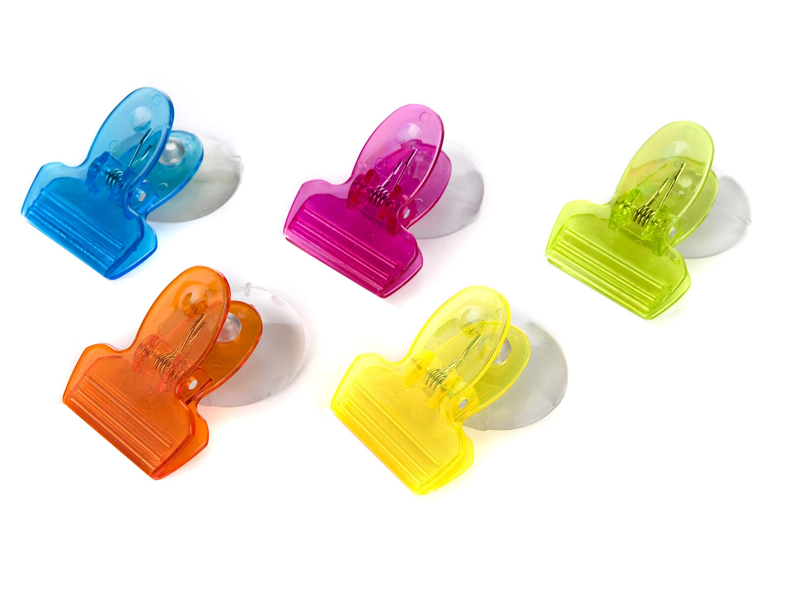 Set practic de cleme cu ventuză pentru prinderea rapidă a notițelor, mesajelor și documentelor pe suprafețe netede. Aderență puternică, mutare ușoară fără a deteriora suprafața și un mix vesel de culori care va înveseli biroul și locuința.