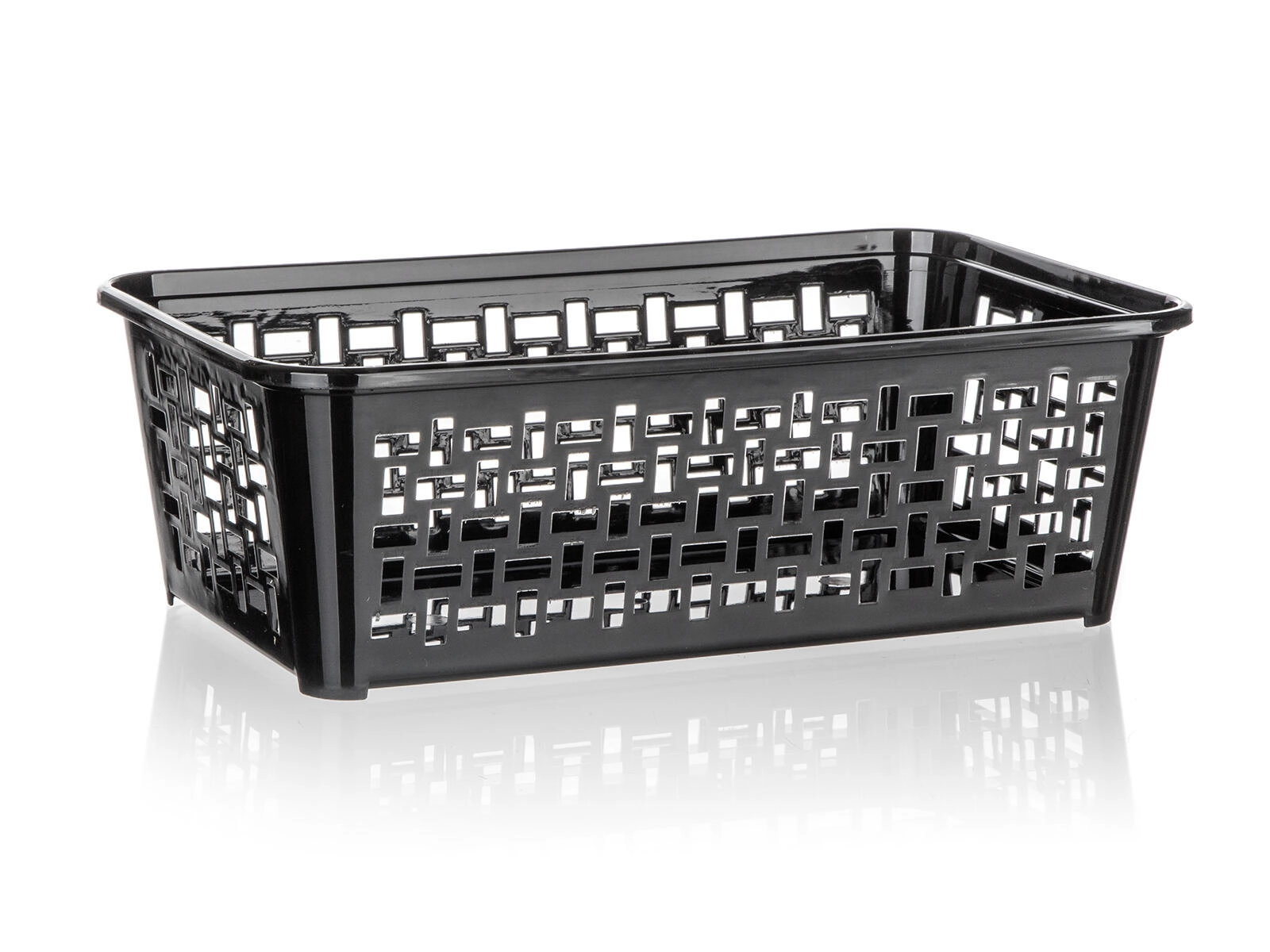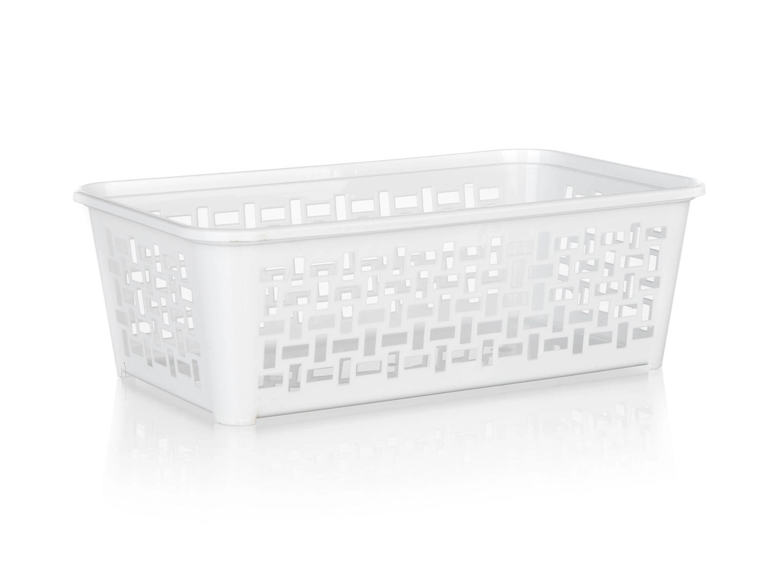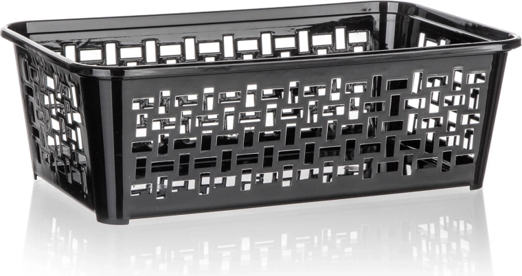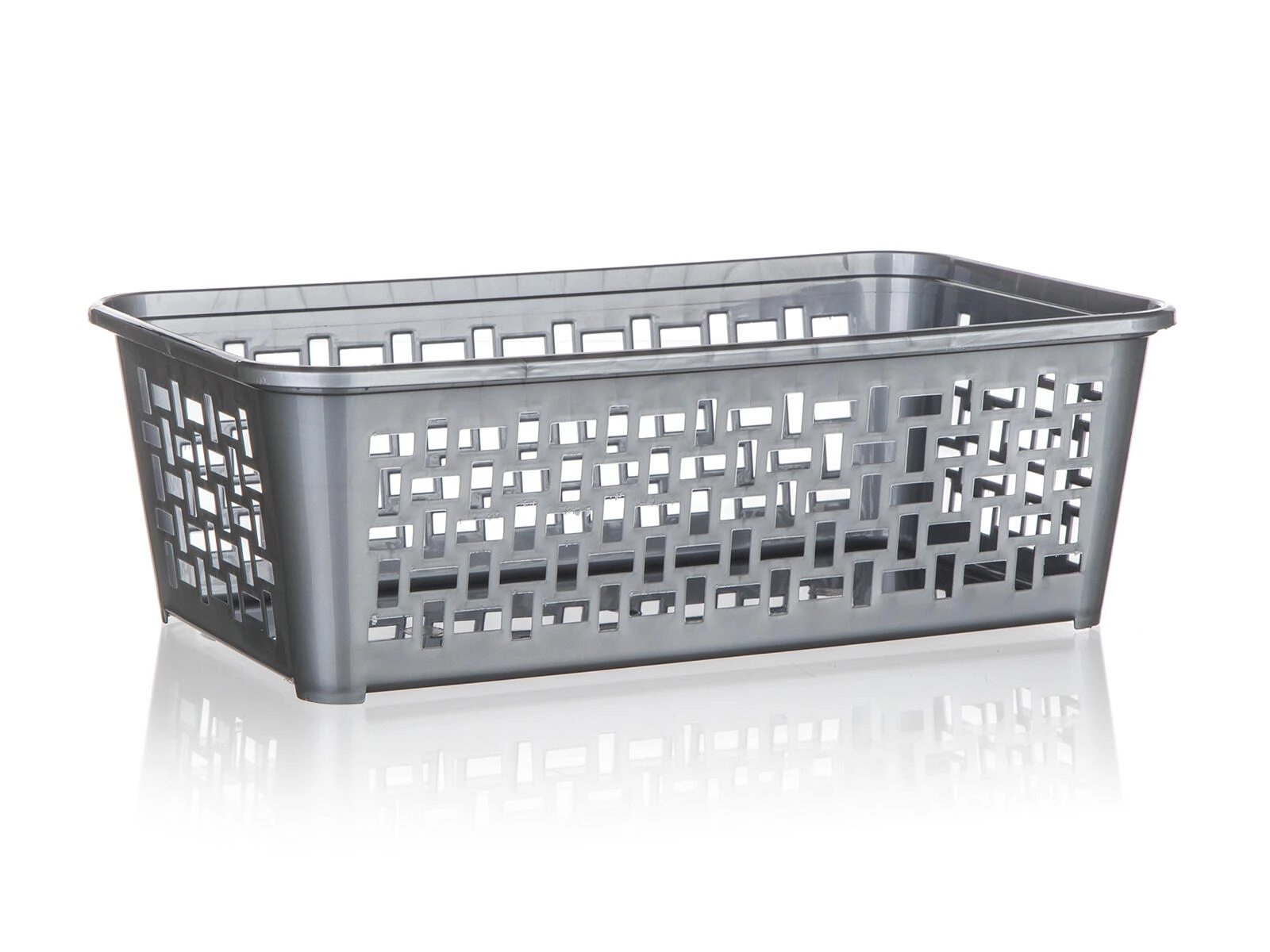 Organizați mărunțișurile inteligent și cu stil. Acest coș de depozitare ușor, dar rezistent, din plastic de calitate este ideal pentru produse cosmetice, detergenți, condimente, pungi pentru congelator, articole de birou și lucruri pentru copii. Pereții perforați asigură ventilație și orientare rapidă în conținut.