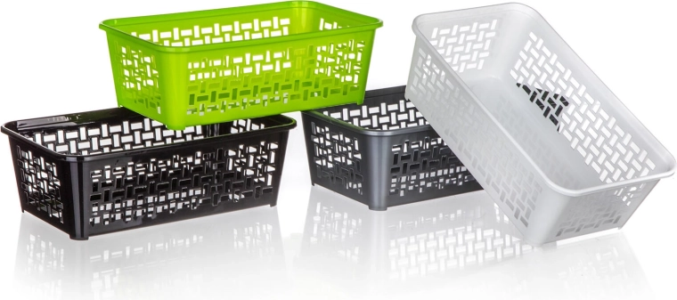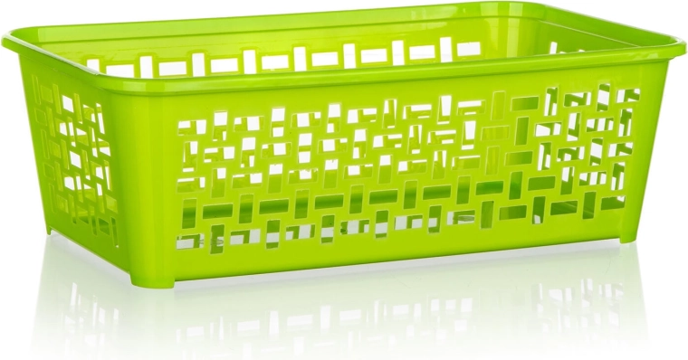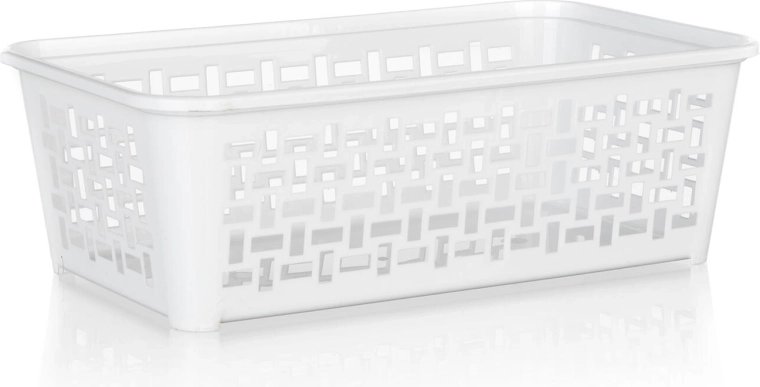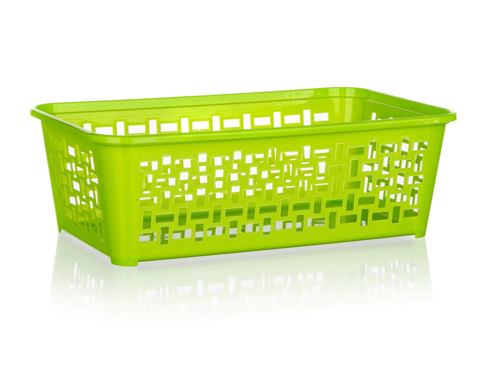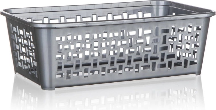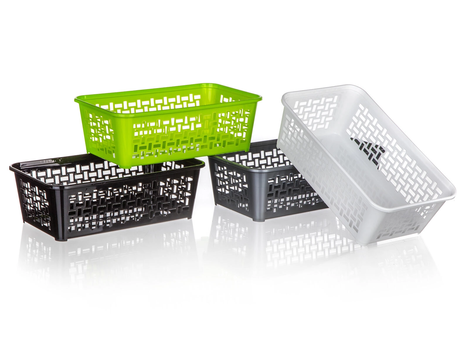 Organizați mărunțișurile inteligent și cu stil. Acest coș de depozitare ușor, dar rezistent, din plastic de calitate este ideal pentru produse cosmetice, detergenți, condimente, pungi pentru congelator, articole de birou și lucruri pentru copii. Pereții perforați asigură ventilație și orientare rapidă în conținut.