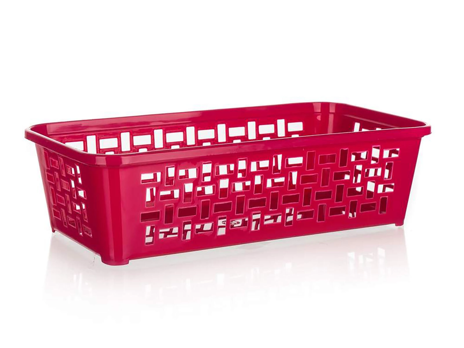 Păstrați ordinea cu stil și eficiență. Acest coș din plastic cu pereți perforați permite o bună ventilație și o privire rapidă asupra conținutului. Ideal pentru cosmetice, rechizite de birou, condimente, punguțe sau textile mici.