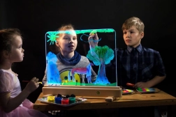 Placa durabilă din sticlă securizată rezistă entuziasmului copiilor și permite pictura cu acuarele, cu degetele și cu markere lavabile. Se poate desena pe ambele fețe, astfel încât copiii se pot alterna sau crea împreună.