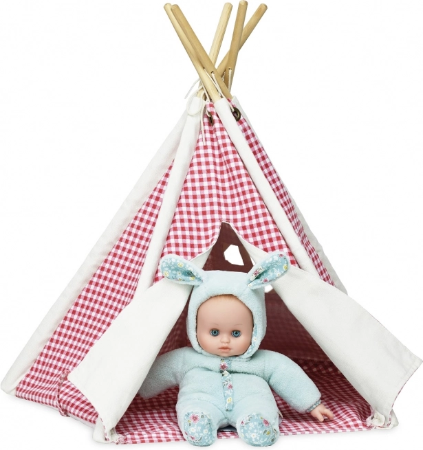 Mini tipí este un accesoriu ideal pentru jocul creativ cu păpușile. Datorită structurii din lemn și materialului textil rezistent, își păstrează forma, se transportă ușor și se montează și demontează în câteva clipe. Designul în carouri, în culori roșu și alb, este jucăuș și totodată stilat.