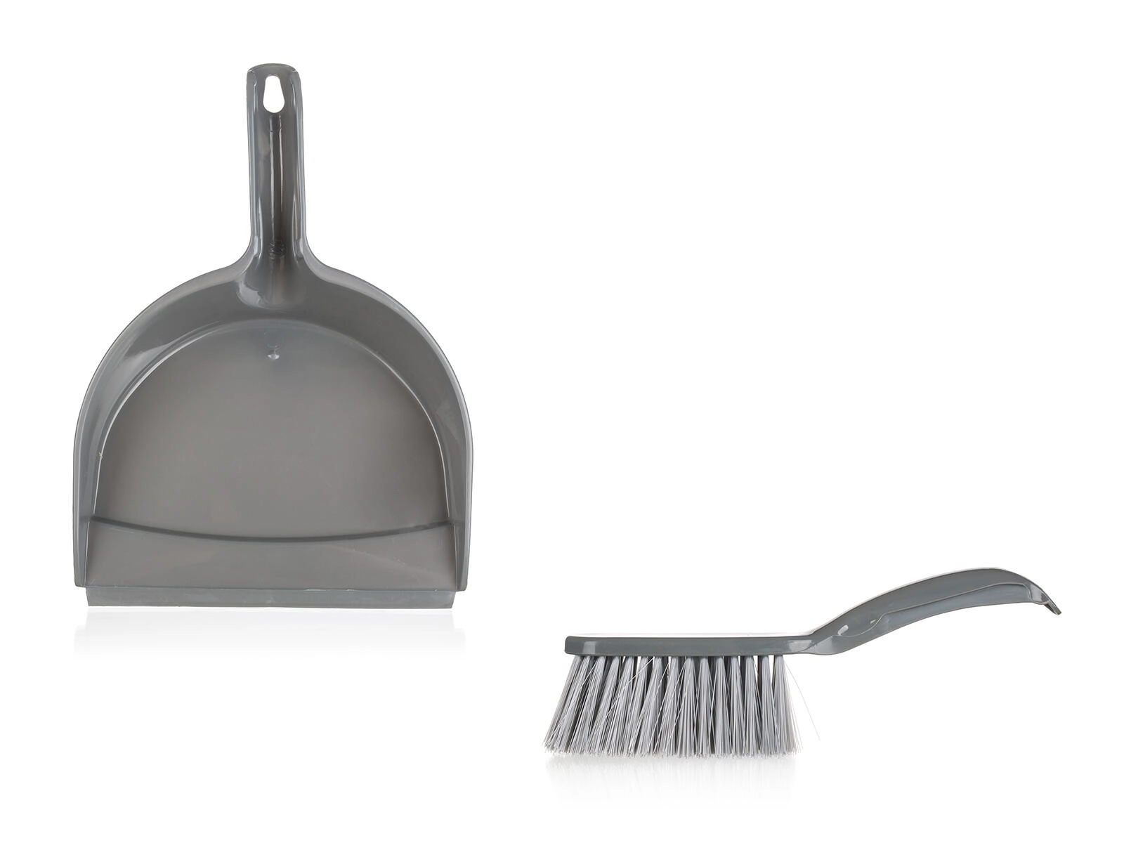 Set practic pentru curățenie rapidă: măturică și făraș cu margine din cauciuc pentru colectarea curată a murdăriei fără praf inutil. Set ușor din plastic în culoare argintie, ideal pentru utilizare zilnică pe pardoseli, în bucătărie și la birou.