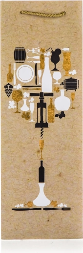 Această pungă cadou pentru sticlă este o alegere excelentă pentru zile de naștere, nunți, cadouri corporate și ocazii festive. Hârtia de calitate și mânerul textil robust asigură transportul fiabil al sticlei de vin sau al distilatelor, în timp ce decorul cu motiv de sticlă conferă cadoului un aspect elegant.
