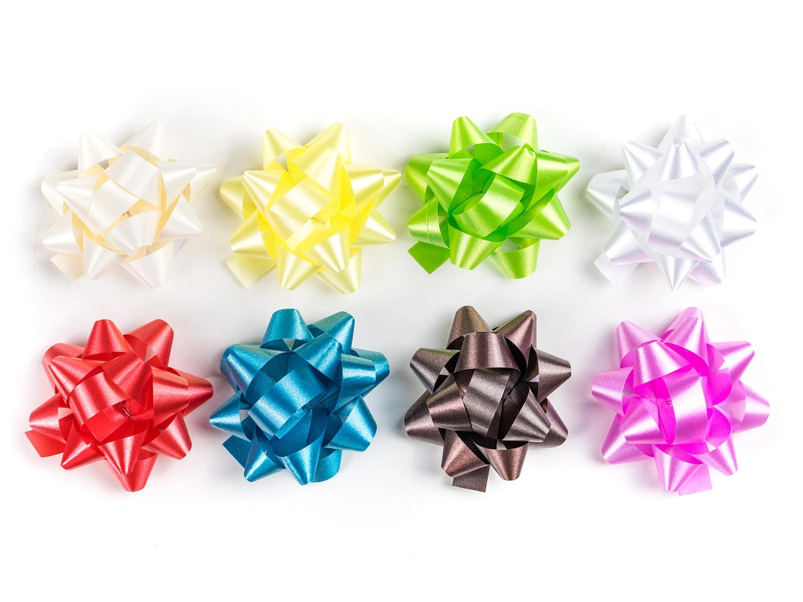 Mix de culori de la alb și argintiu până la roșu, albastru și roz, care oferă fiecărui cadou o notă elegantă.