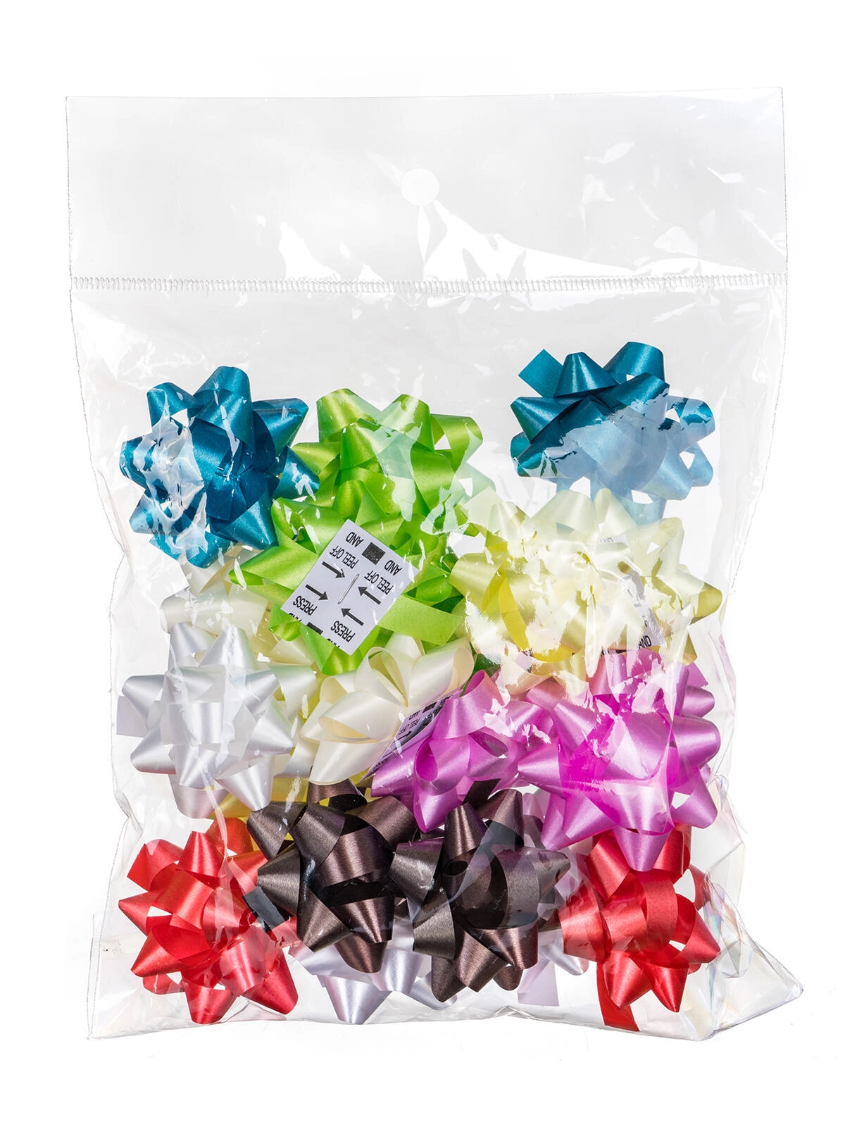 Dezlipiți, presați și gata. Rozetele aderă sigur pe hârtie de ambalat, cutii și pungi, fără a fi nevoie de lipici sau panglică.