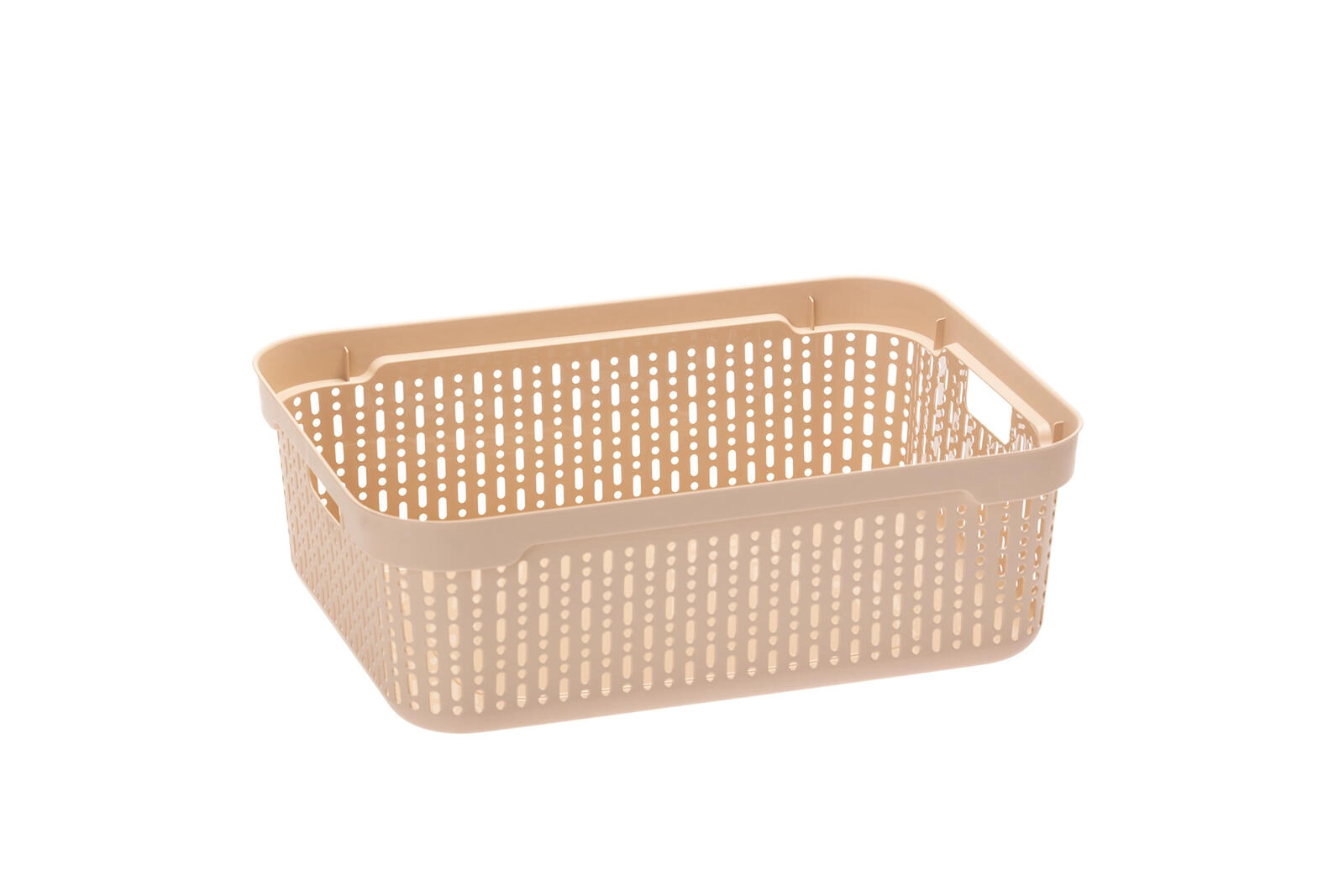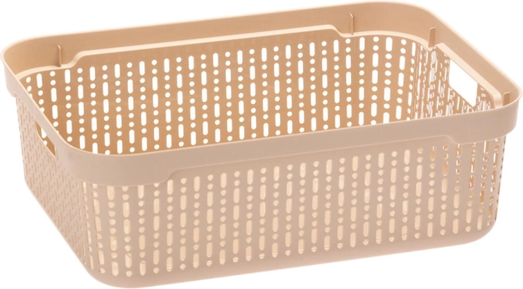 Coșul practic de depozitare din plastic Morsetta, cu dimensiunile 39,3 × 30 × 13 cm, este ideal pentru organizarea clară a lucrurilor în locuință, birou și dressing. Are o structură perforată rezistentă pentru ventilare și vizibilitate rapidă a conținutului, mânere integrate pentru transport facil și o suprafață ușor de curățat. Disponibil într-un mix de culori moderne pentru a se potrivi cu interiorul.