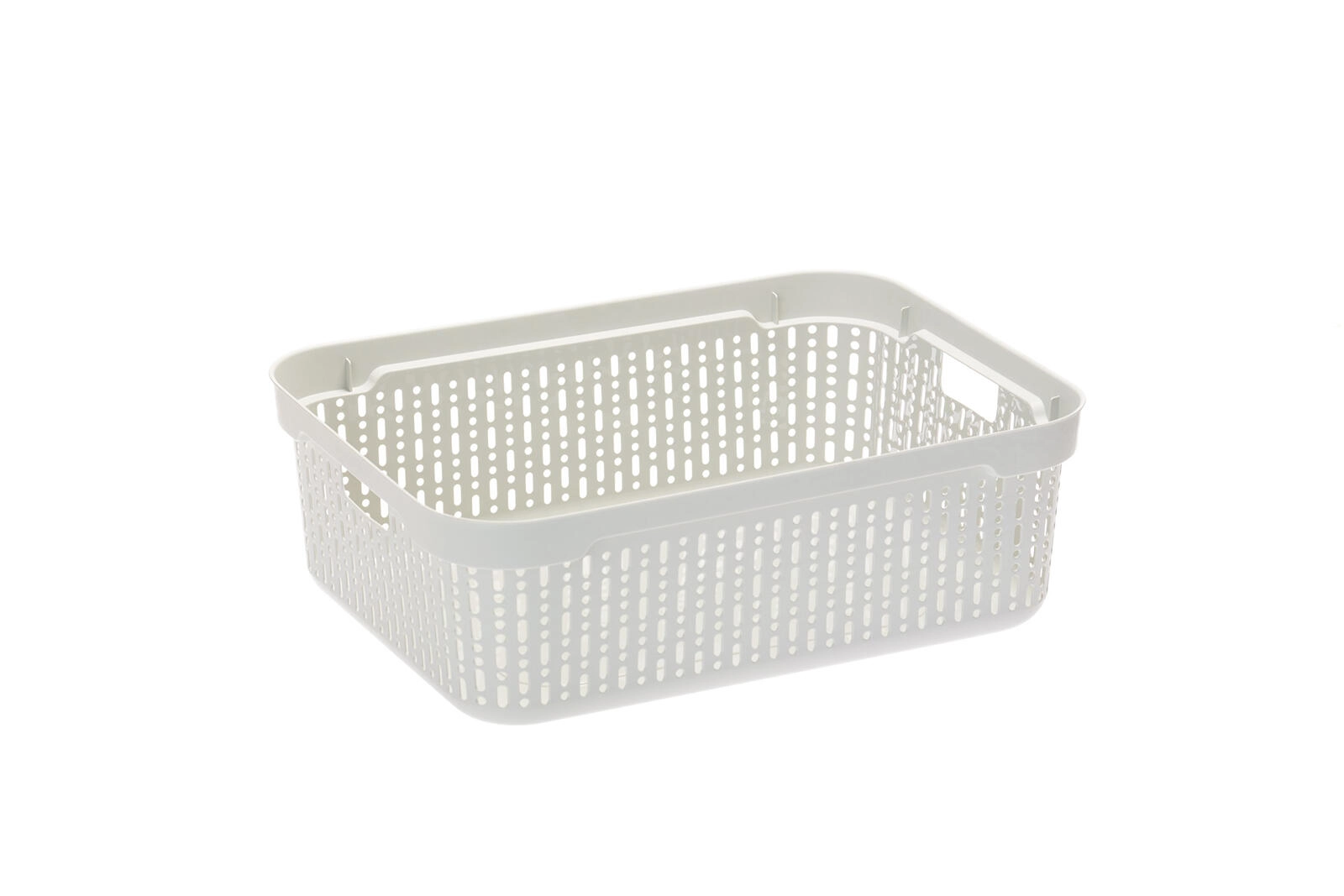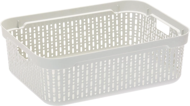 Păstrați ordinea cu stil. Coșul Morsetta din plastic rezistent oferă utilizare universală – de la organizarea alimentelor în cămară, la jucării în camera copiilor, până la cosmetice sau articole de birou. Datorită pereților perforați, conținutul este mereu la vedere și bine ventilat.