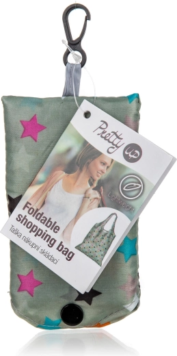 Geanta se pliază într-o husă compactă cu închidere cu capse și clips din plastic – păstrați-o mereu la îndemână pe chei sau în geantă.