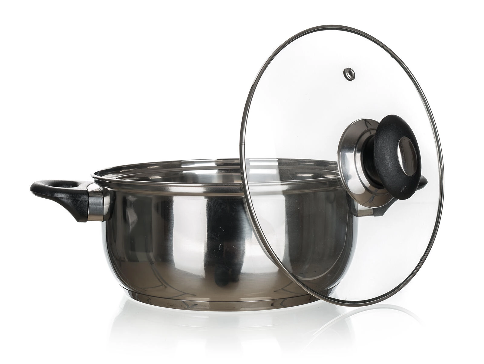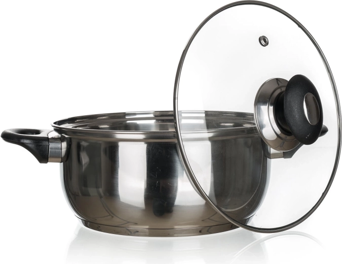 Setul de vase din oțel inoxidabil GLORY, într-o configurație practică de 10 piese, acoperă fierberea, înăbușirea și prăjirea. Oțelul inoxidabil lucios asigură conductivitate uniformă a căldurii și durabilitate, în timp ce capacele din sticlă permit controlul preparatelor fără pierderi inutile de căldură și umiditate.