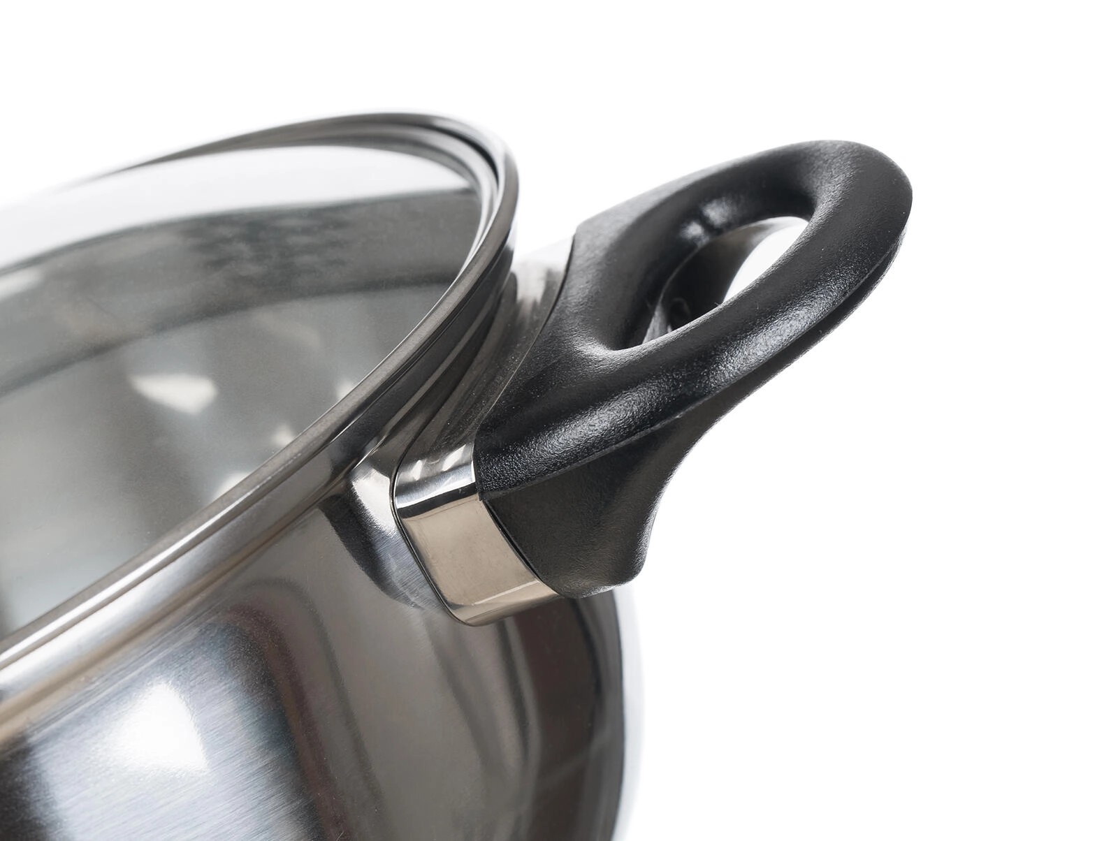Mânerele și toartele cu formă ergonomică asigură o priză fermă și o manipulare sigură atât la gătit, cât și la servire.