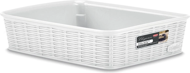 Coș practic și stilat pentru casă, ideal pentru depozitarea ordonată a mărunțișurilor și alimentelor. Plastic ușor, întreținere facilă și culoare albă universală potrivită pentru orice bucătărie, baie sau dressing.
