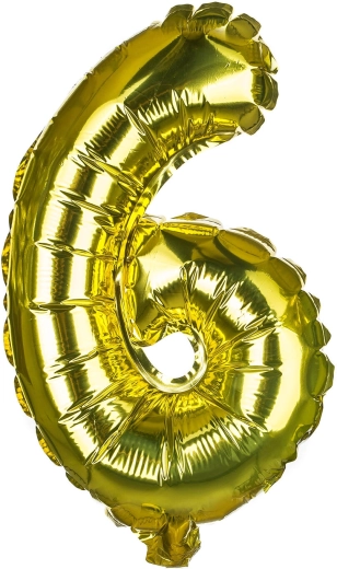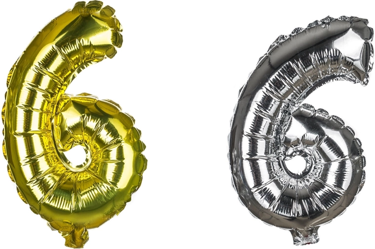 Balon din folie stilat în forma cifrei 6, cu înălțimea de aproximativ 30 cm, într-un mix elegant de culori auriu și argintiu. Include pai de hârtie pentru o umflare ușoară și sforicică pentru agățare. Ideal ca decorațiune pentru zile de naștere, aniversări și petreceri, se poate umfla cu aer.