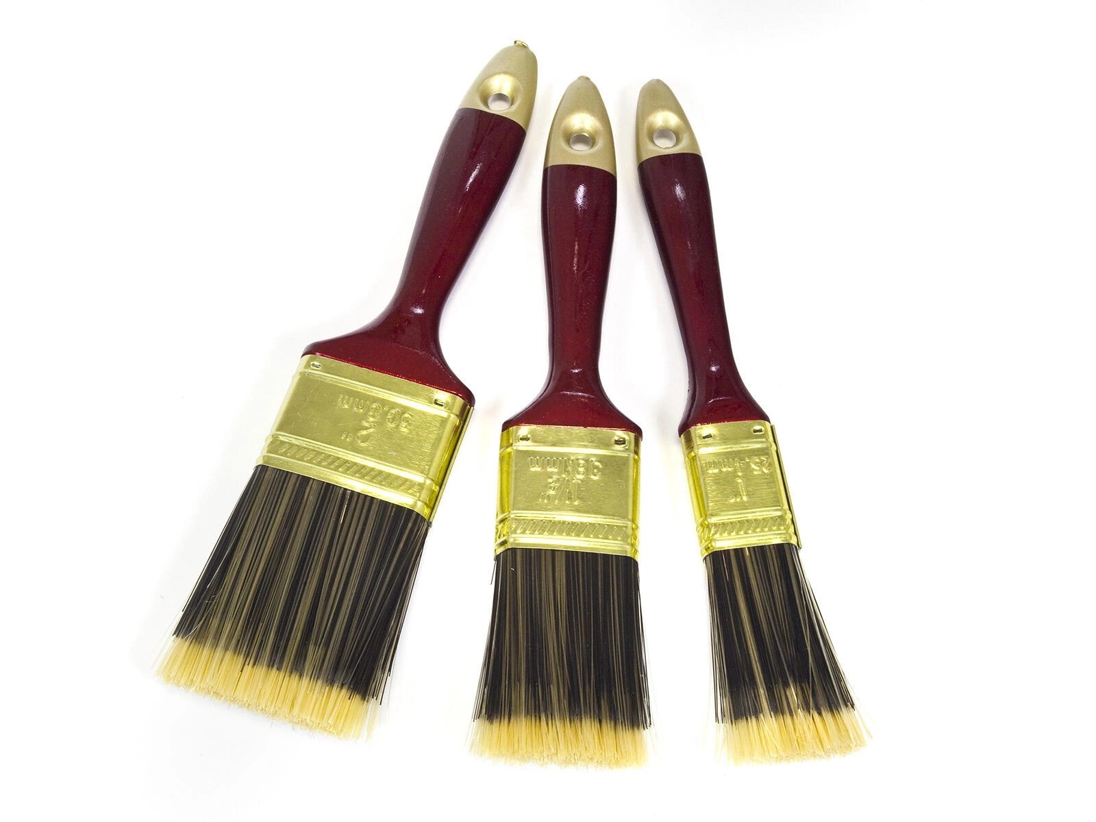 Set universal de pensule plate în trei dimensiuni: 25, 38 și 51 mm, pentru acoperiri precise și pe suprafețe mari. Ideal pentru vopsele, lacuri și lazuri pe diverse suprafețe, atât în casă, cât și în atelier.