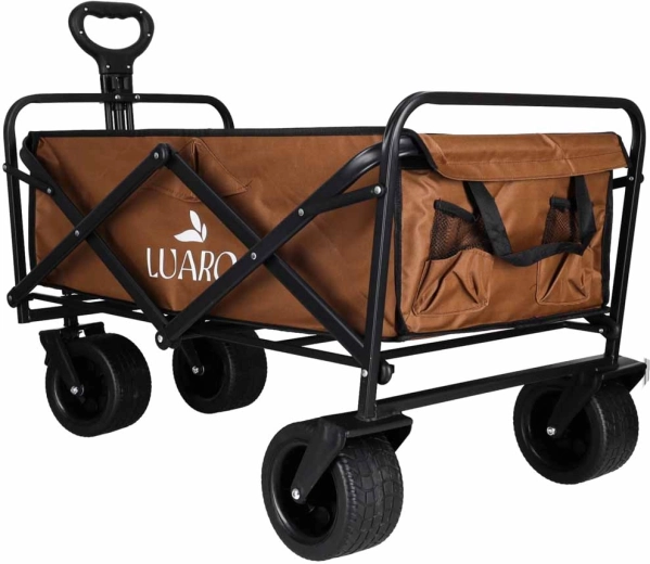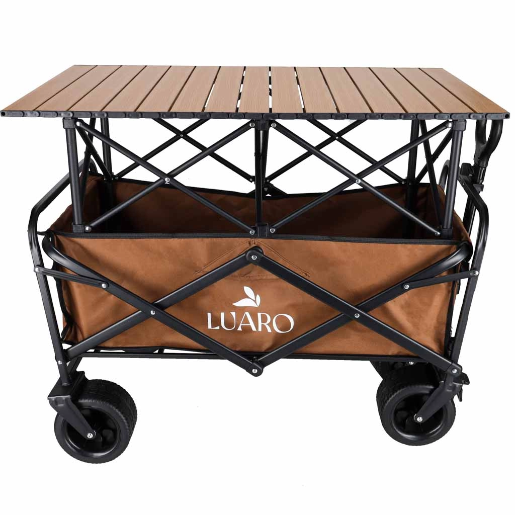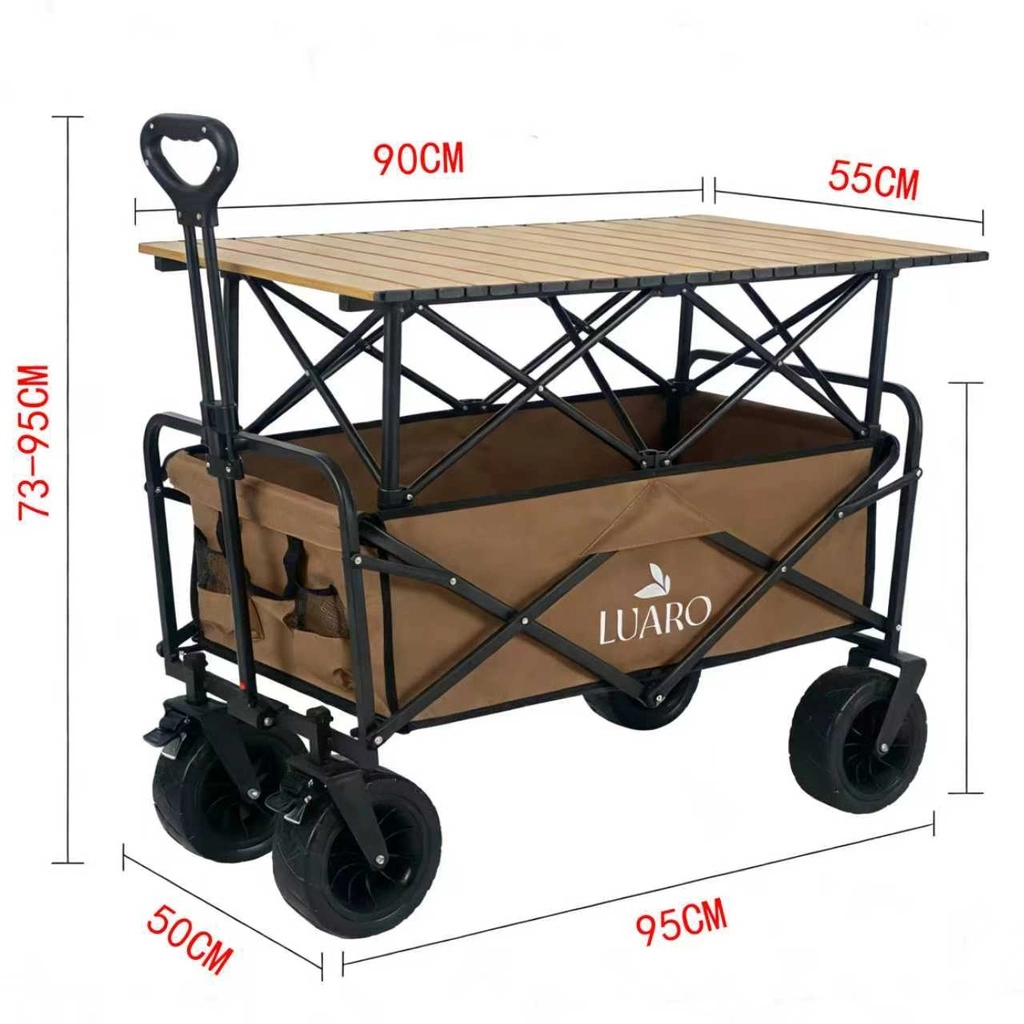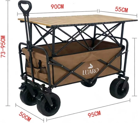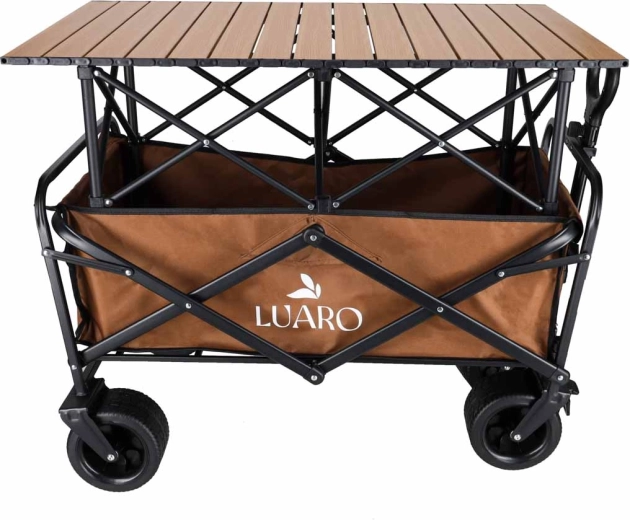 Căruciorul pliabil practic LUARO 2în1 combină un coș de transport încăpător cu o măsuță stabilă detașabilă. Ideal pentru camping, plajă, picnic și grădină. Oferă capacitate de încărcare de până la 150 kg, roți mari pentru teren accidentat pentru o rulare lină pe nisip și pietriș și țesătură Oxford 600D durabilă cu strat dublu pentru o durată mare de viață.