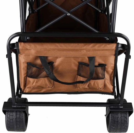Cu acest cărucior universal veți transporta comod echipamentul pentru plajă, cumpărături sau camping. Construcția robustă din oțel cu țesătură Oxford 600D suportă până la 150 kg, în timp ce roțile mari de 8" tip Tank fac față terenului denivelat. Mânerul telescopic și cadrul pliabil tip foarfecă facilitează manevrarea și depozitarea.