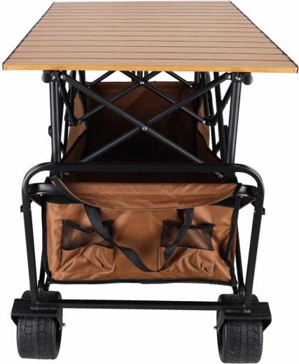 Blatul detașabil cu dimensiunile 90 × 55 cm transformă căruciorul într-o masă practică pentru picnic, gătit sau organizarea echipamentului.
