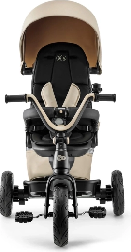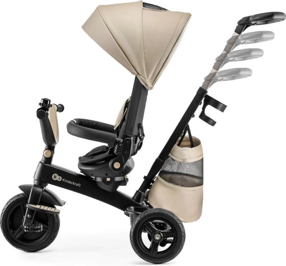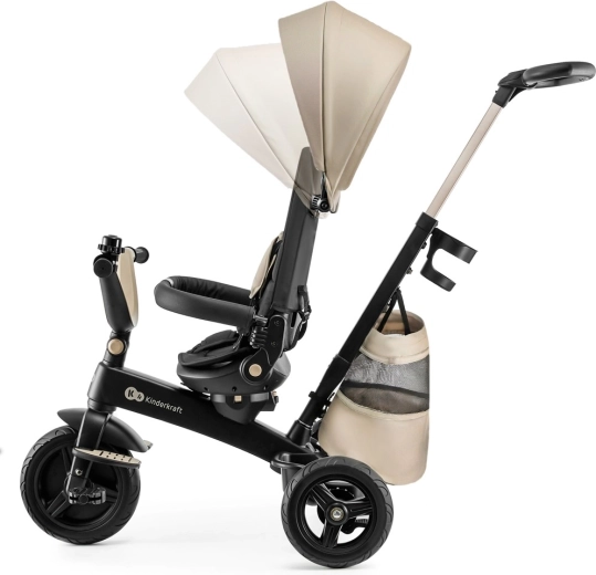 Părinții vor aprecia cadrul ușor din magneziu, manevrarea facilă, mânerul telescopic cu comandă prin buton și frâna pe roțile din spate. Construcția modulară crește odată cu copilul: de la modul cu suport pentru picioare și roată liberă până la deplasarea independentă cu pedale. Roțile PU sunt silențioase, rezistente și fără întreținere, cu rulmenți pentru o deplasare lină.