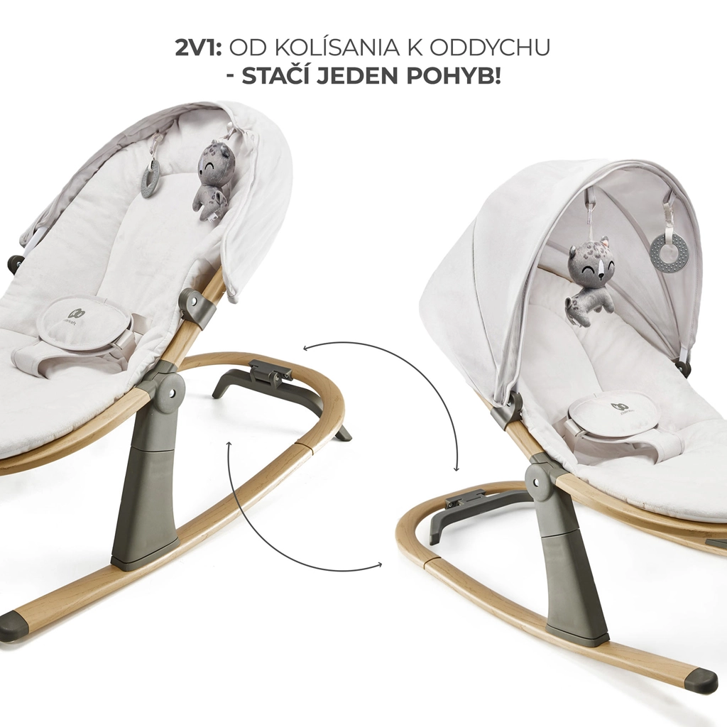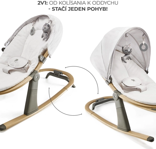 Șezlongul stilat KINDERKRAFT Elsu Grey este conceput pentru confortul zilnic al bebelușului de la naștere până la 9 kg. Datorită blocării inteligente, comutați ușor din legănare fină la un șezlong stabil dintr-o singură mișcare. Cele trei poziții ale spătarului oferă relaxare confortabilă și interacțiune jucăușă, în timp ce scaunul moale din materiale plăcute este ușor de întreținut – husa poate fi îndepărtată și spălată oricând.
