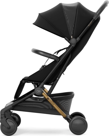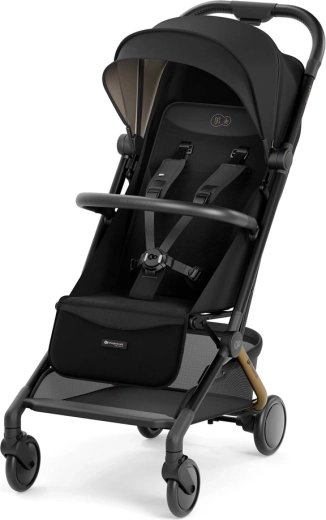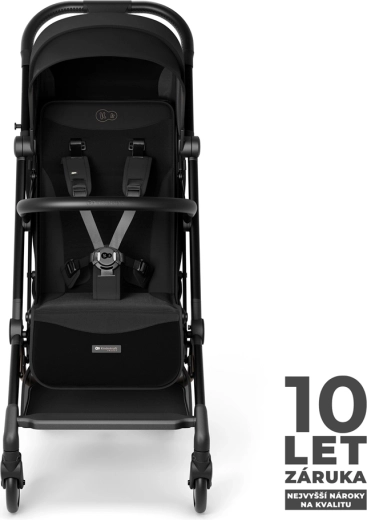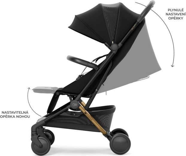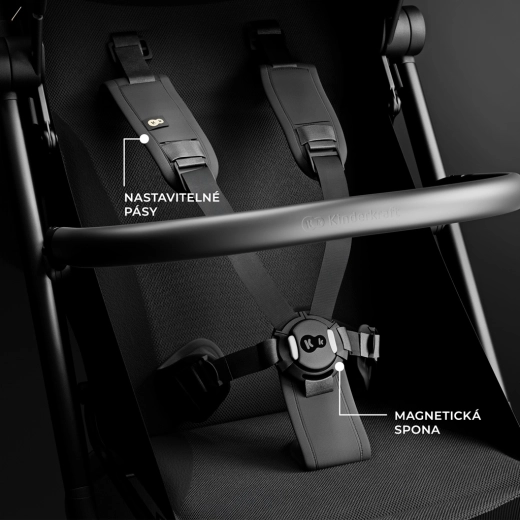 Reglarea poziției de la șezut până la culcat complet și suportul pentru picioare ajustabil oferă celor mici un repaus de calitate chiar și în timpul excursiilor mai lungi. Centurile magnetice în 5 puncte cu închidere rapidă și bara de protecție pivotantă, detașabilă de pe ambele părți, ușurează manipularea zilnică. Designul elegant, cu detalii din piele ecologică, subliniază aspectul premium, iar coșul mare și opțiunea de a adăuga suport pentru băuturi (achiziționabil separat) sporesc confortul părinților.