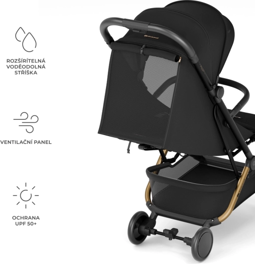 Copertina extensibilă, impermeabilă, cu UPF 50+ protejează împotriva soarelui și ploii. Centurile magnetice în 5 puncte oferă siguranță și închidere rapidă, fără manipulări îndelungate.