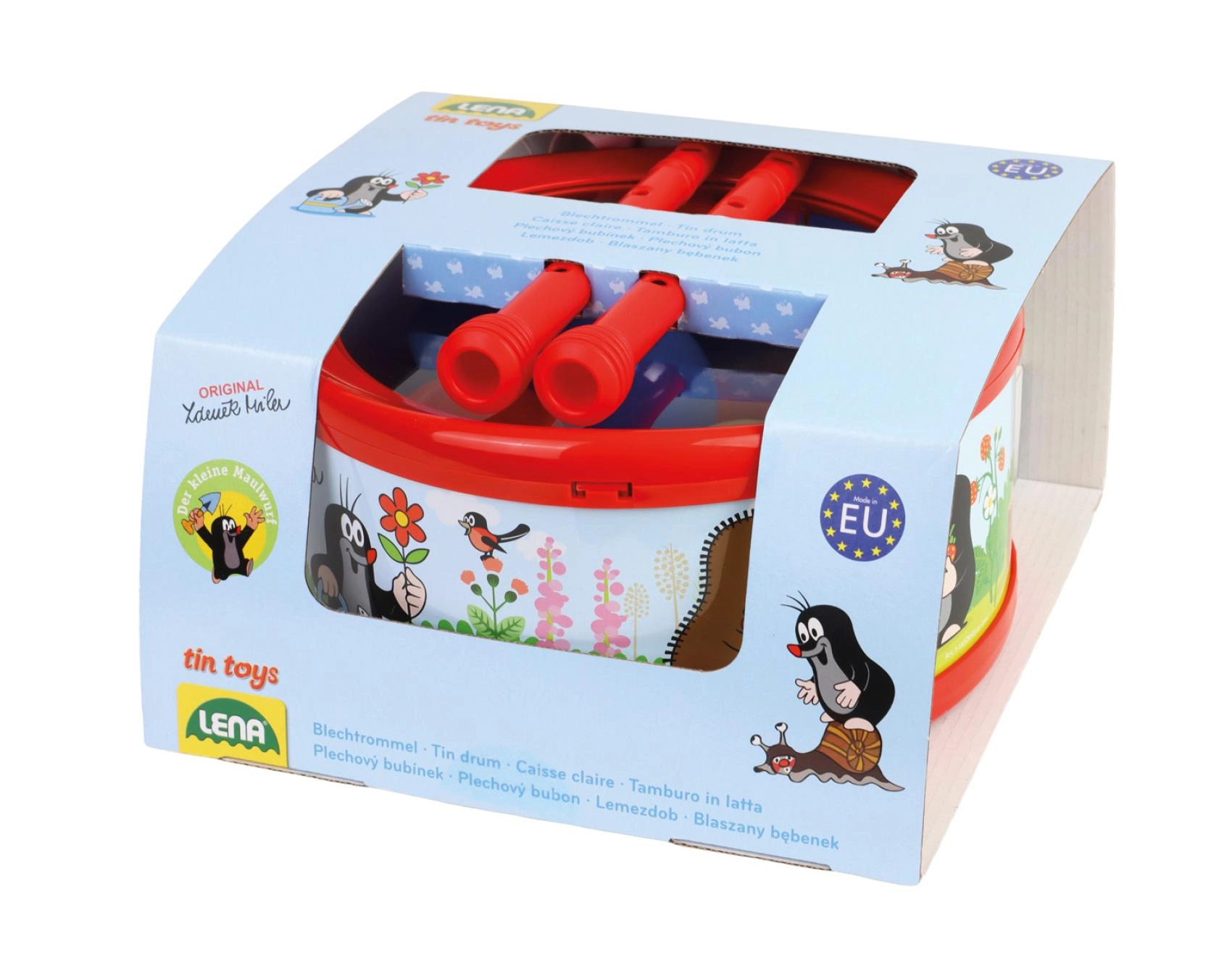 Toba metalică pentru copii, cu îndrăgitul motiv KRTEK, îi va bucura pe micii muzicieni. Setul include bețe care pot fi folosite și ca fluiere, iar în interiorul tobei se află baloane pentru un efect sonor mai distractiv.