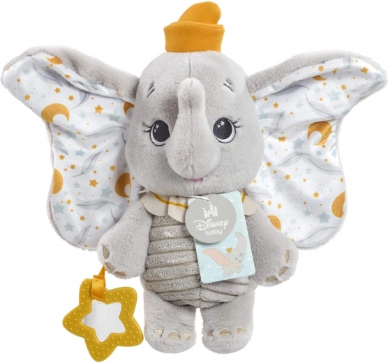 Elefănțelul de pluș DISNEY DUMBO, cu urechile sale mari iconice, oferă bebelușilor senzație de siguranță, finețe și distracție într-un singur produs. Este ușor, se potrivește perfect mânuțelor mici și, datorită execuției foarte moi, devine un companion preferat în pătuț, în cărucior și la drum.
